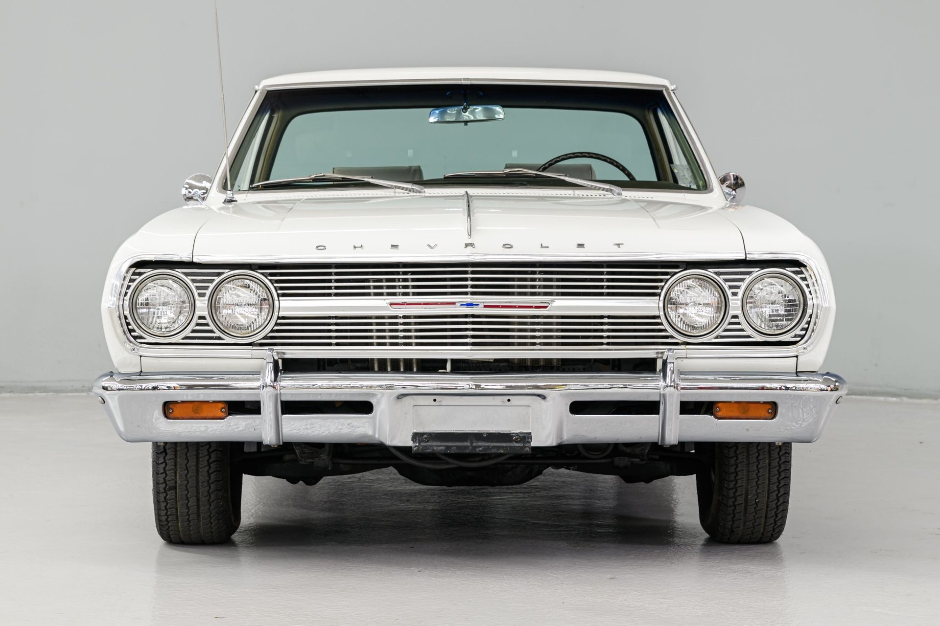 Chevrolet created their first 'hybrid' pickup in 1959 – the El Camino. The first generation was based on the full-size Chevrolet sedan chassis and was only built for two years. The second generation was reintroduced in 1964 and was based on the Chevelle platform. This '65 Chevy El Camino is mostly original except for a respray of original (C-code) Ermine White that is in very good condition. Chrome and stainless are excellent and a contrasting tan vinyl bed cover has been custom fitted. Factory steel wheels mount 14” Goodyear w/w radials with optional '65 Chevelle/El Camino 'mag' wheel covers. The handsome interior is in good original condition. Dash, door cards, headliner and carpeting are all nice. Comfort features include cold A/C, AM sound system, color-keyed mats, original wheel and tinted windows. Power is furnished by a 327ci small-block that is said to have never been rebuilt. It is equipped with a Carter AFB four-barrel carburetor and custom dual exhaust. Output for the base 327/4V engine was rated at 250hp. It is fitted with a new alternator and backed by a 2-speed PowerGlide automatic transmission that delivers torque to a 10-bolt differential. The chassis is fitted with power steering and manual 4-wheel drum brakes (new) w/dual master cylinder, rear air shock suspension and front sway bar. The current owner of this El Camino has taken excellent care of this classic Chevy and it is now ready for a new owner who will value this rare Bowtie 'hybrid' pickup.