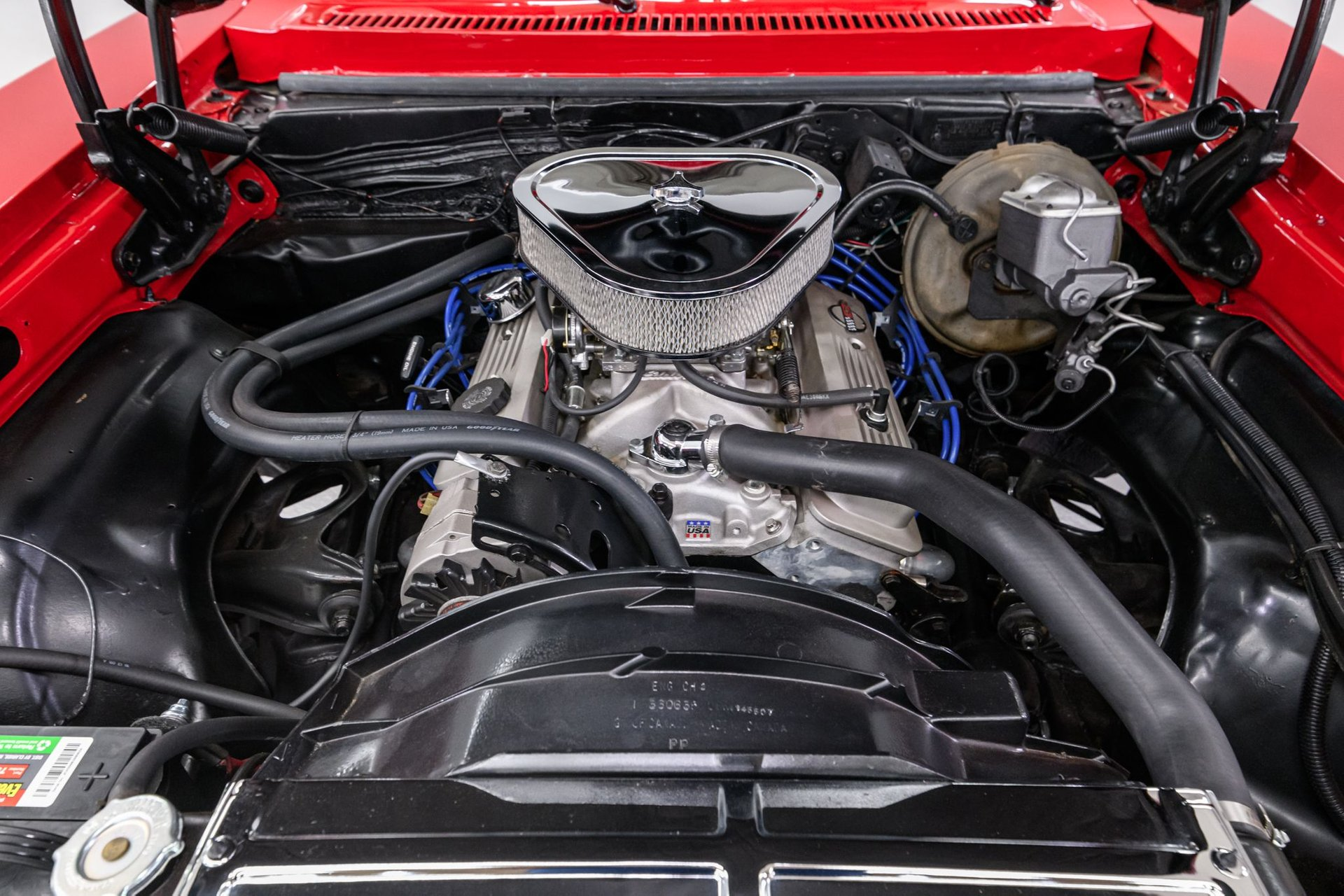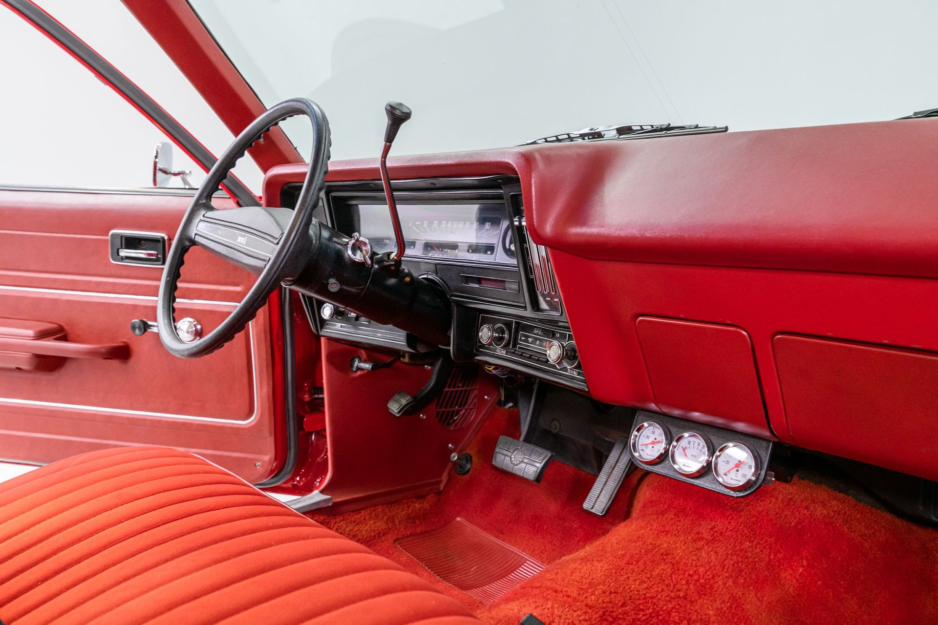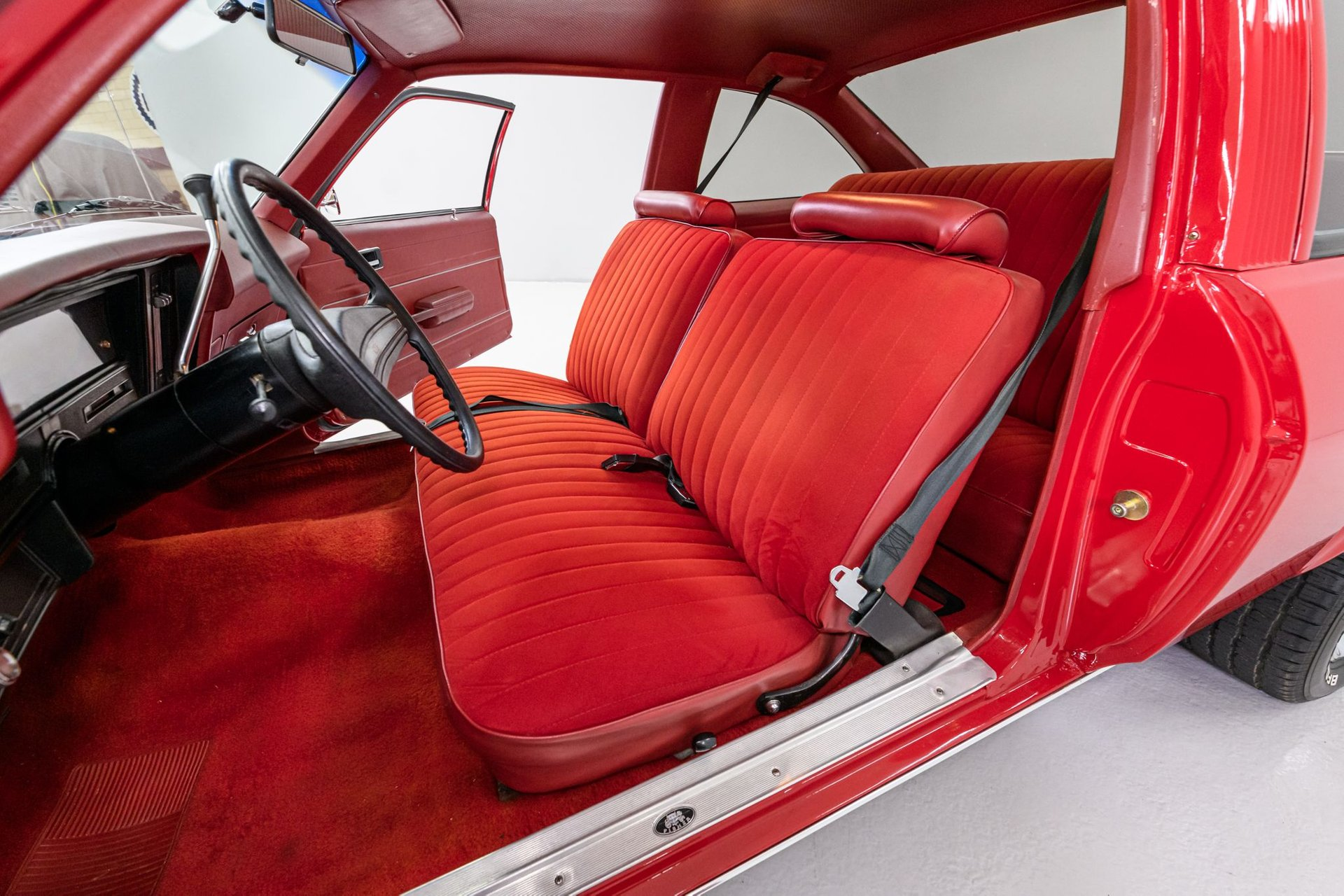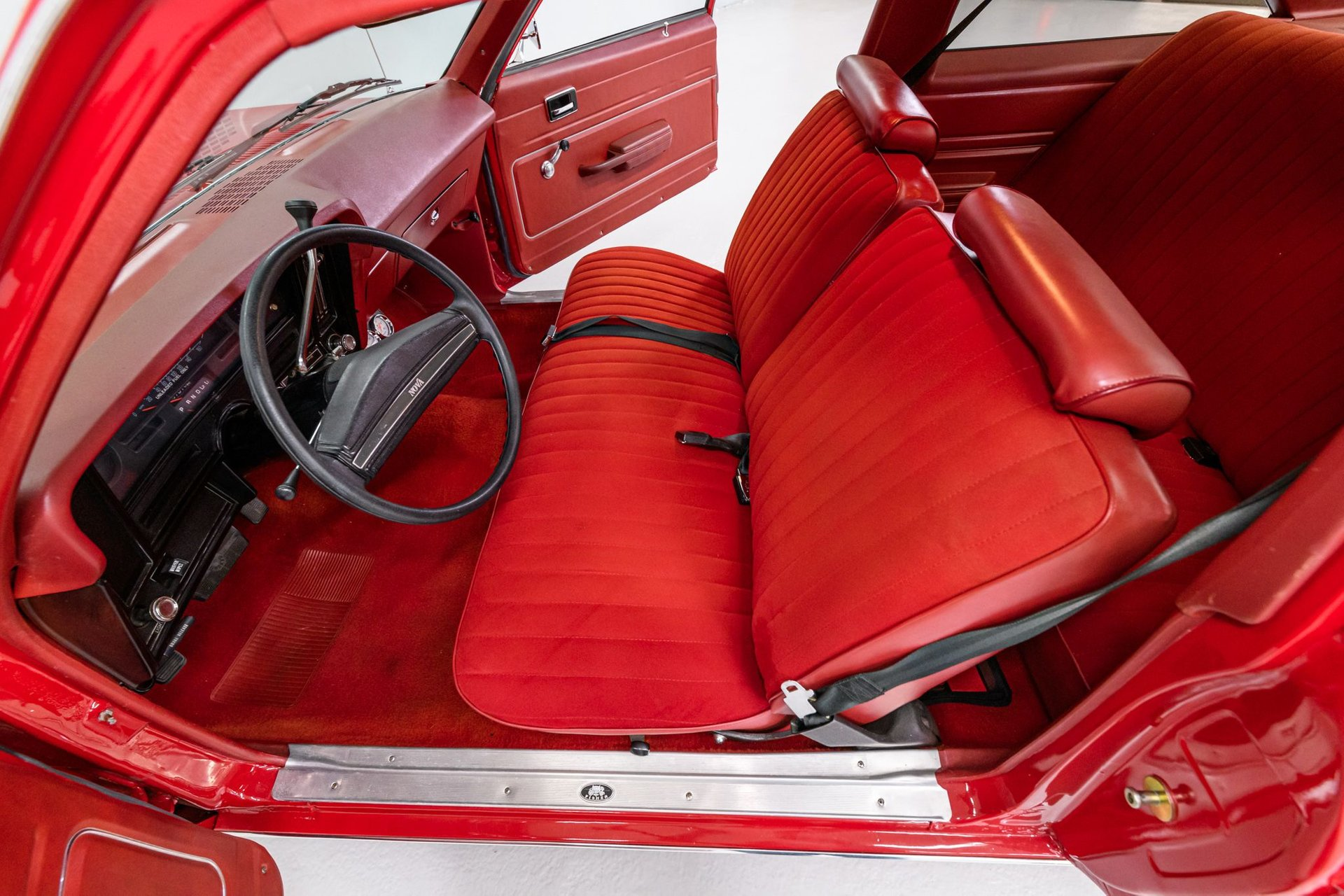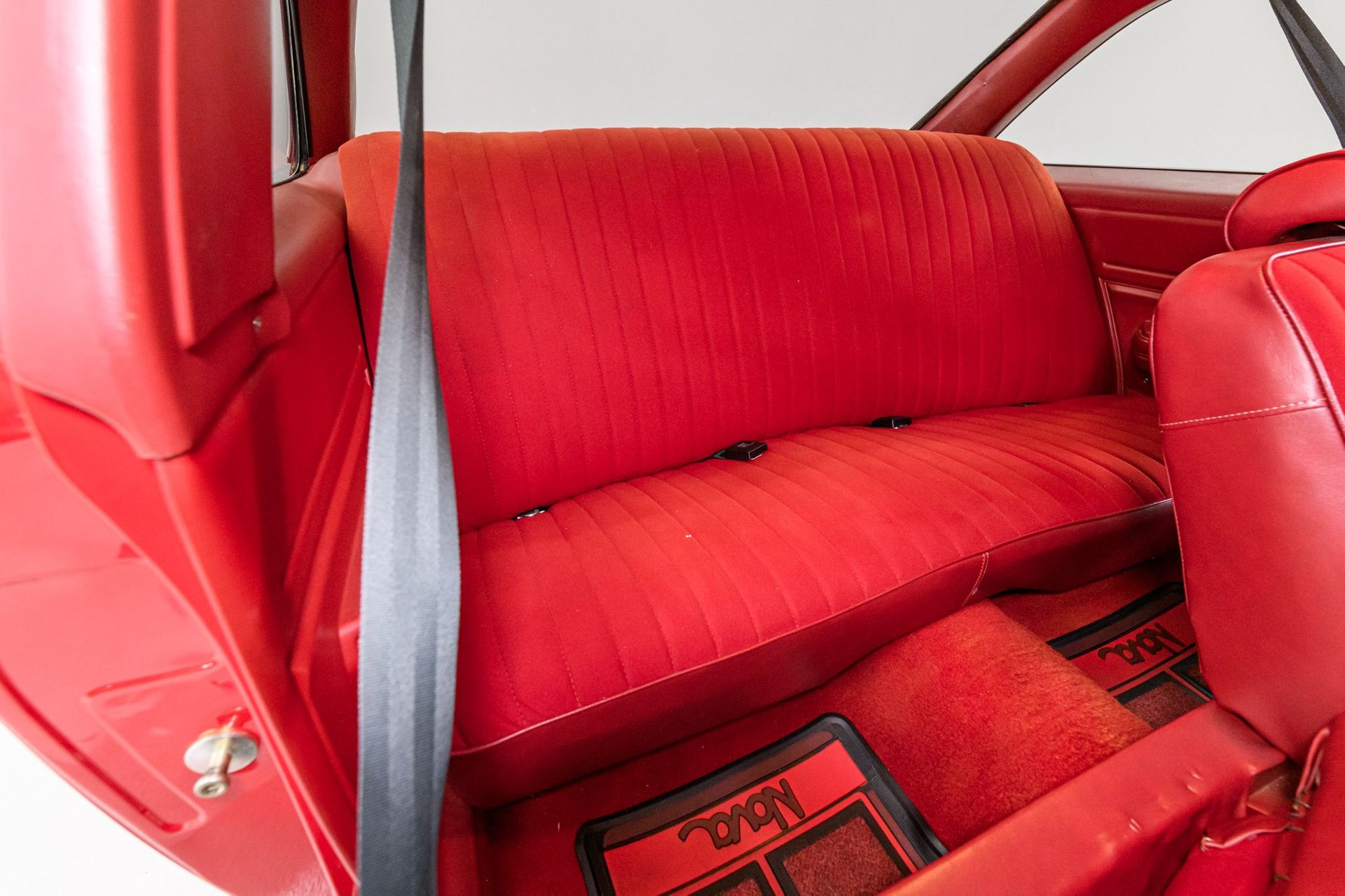 This 1976 Chevrolet Nova began life as a mundane 2-door post, but has been transformed into a performance coupe in the image of the Chevy Nova SS 350 muscle car of the late 60s. The Nova received a full restoration with mechanical upgrades (2018) and the owner states that the mileage shown (just under 58,000) is believed to be actual. The exterior was professionally refinished in 2-stage GM Torch Red and is in excellent condition. Chevy Rally wheels with trim rings/spinner centers mount 15” BFGoodrich Radial T/A tires and all chrome is excellent. The red cloth interior was carefully restored and is quite compelling. Dash, door cards, tinted windows, carpeting and headliner are all in excellent condition. A full set of SunPro gauges has been installed and an aftermarket AM/FM sound system furnishes tunes. That said, horsepower is the real story of this Nova. The original 305ci/2v (Q code) engine is long gone, replaced by a L98 350 Corvette motor that sounds awesome. It is equipped with aluminum heads, nice street cam, Edelbrock Performer EPS aluminum intake, Edelbrock 4V carburetor and stainless tube headers that exit to a free-flowing exhaust system. The motor sits in a spotless engine compartment with nice chrome accessories. Torque is delivered through a 350 TurboHydramatic 3-speed gearbox to a stout GM 10-bolt differential. The chassis is fitted with power steering, power disc/drum brakes w/dual master and front sway bar. This '76 Nova has been carefully restored and is truly a Chevrolet 'Perfect Sleeper'.