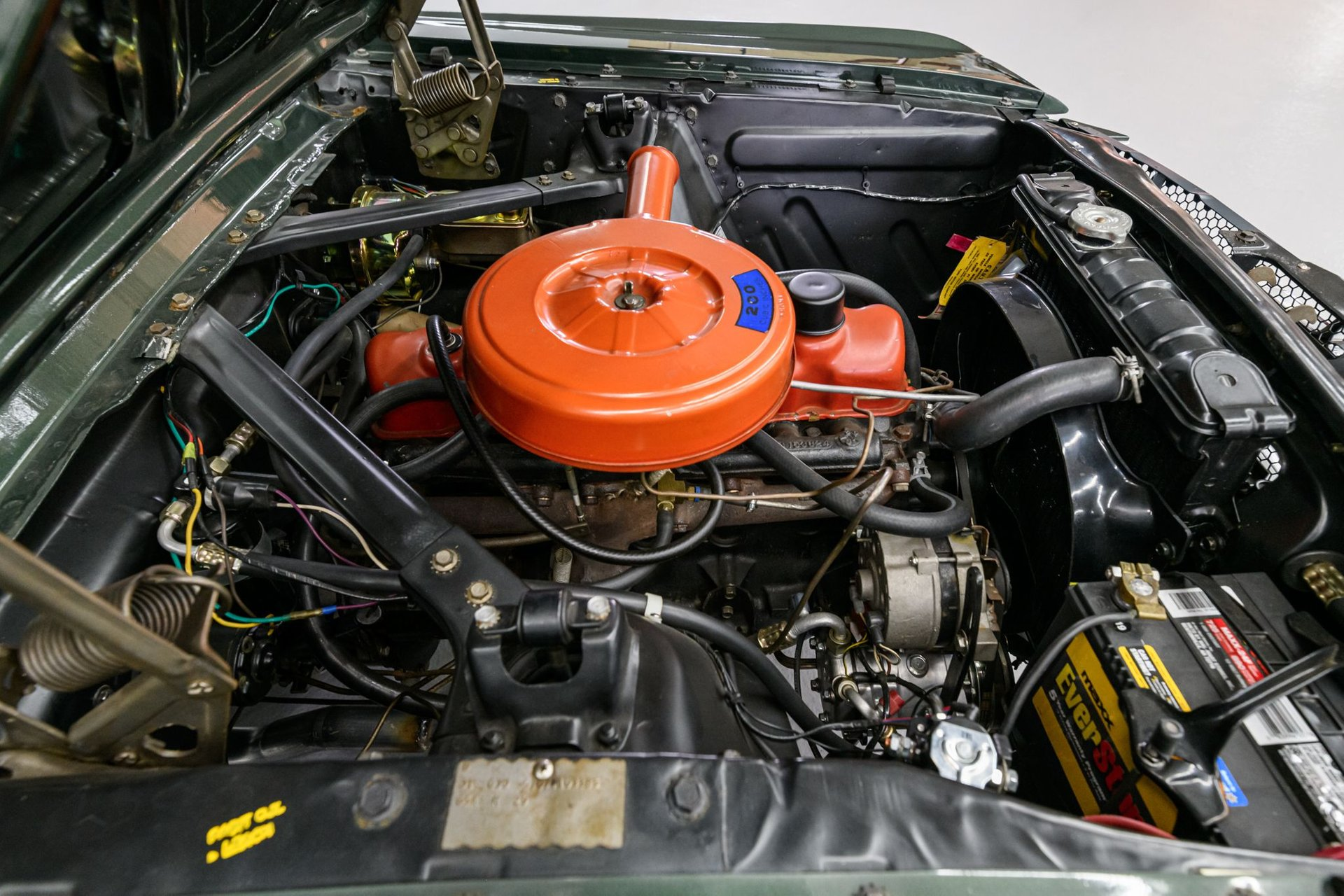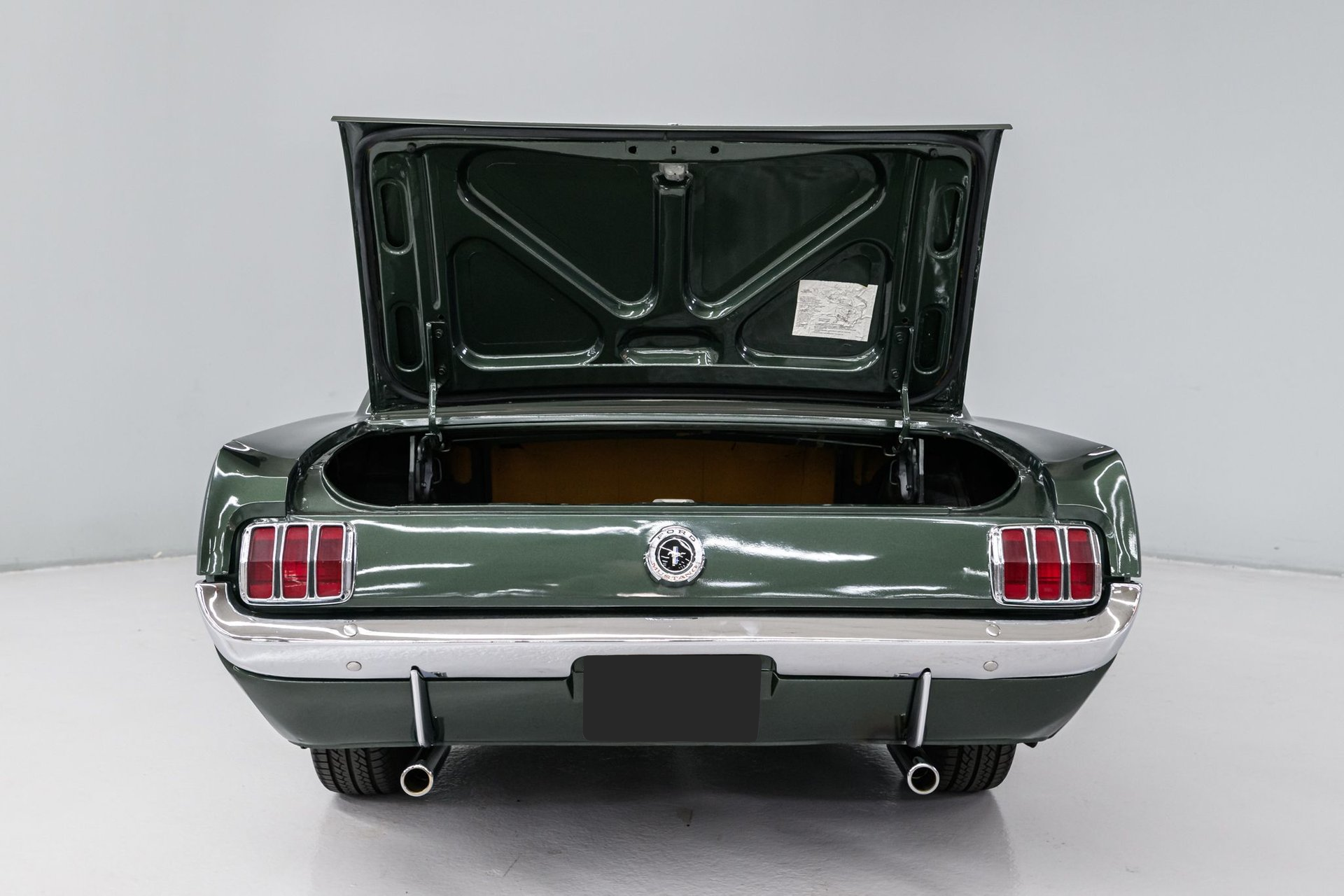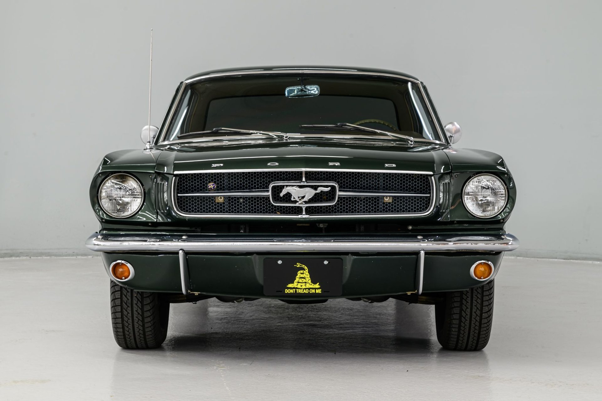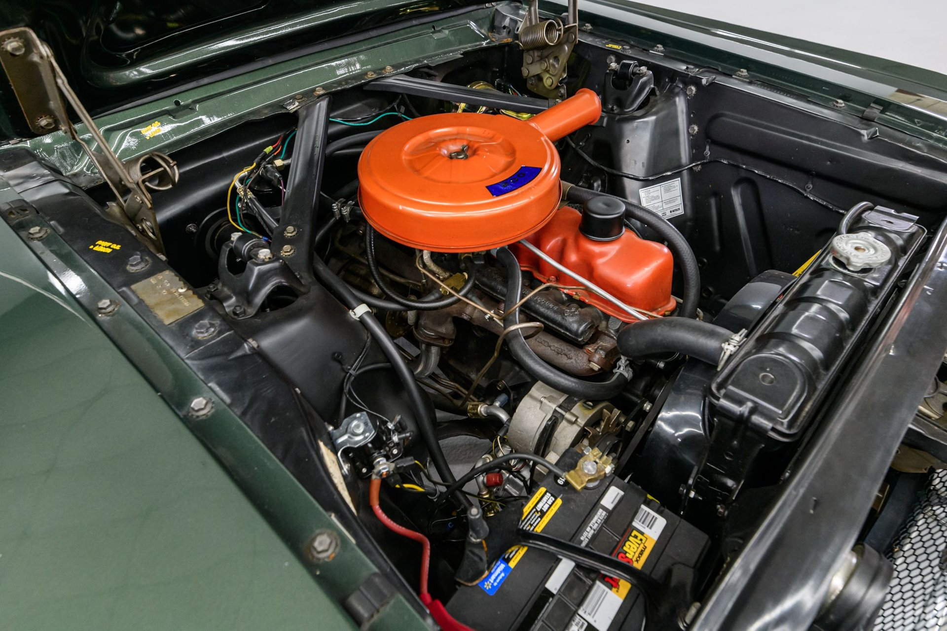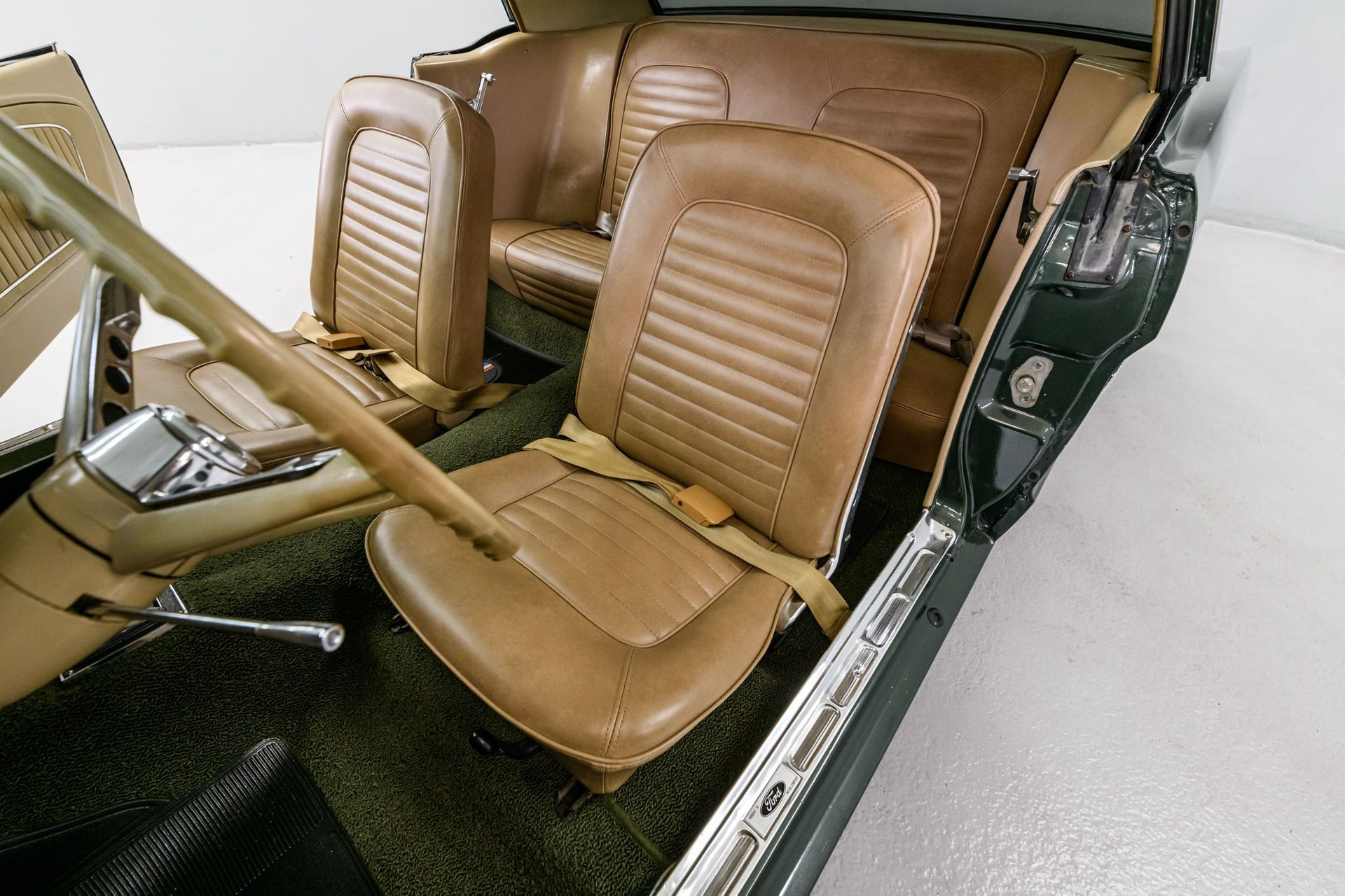 This 1965 Mustang coupe has been fully restored and is an outstanding example of one of the most popular Ford models ever built. A binder of receipts and photos is furnished that provides an extensive record of the restoration process. This Mustang coupe is said to have spent time in classic car museum after the restoration. The sound body was thoroughly evaluated and new metal panels were added where any damage was found. It was then carefully prepped and resprayed original Ivy Green (R-code), a professional 2-stage process that is in excellent condition. Chrome/stainless are in very good condition and factory 14” steel wheels w/full wheel covers mount nearly new UniRoyal Tiger Paw w/w radials. A custom cover is also provided for the car. The Palomino vinyl interior (code 29) has been fully restored and is virtually showroom. Upholstery, dash, carpeting, door cards and headliner are all excellent. The coupe is equipped with Vintage Air A/C, tinted windows and AM/FM sound system. The power train is Ford's bulletproof 'Mileage Maker' 200ci 'T-code' straight-six. It was rebuilt in 2008 and sits in a clean engine compartment. Power is delivered through a C4 3-speed Cruise-O-Matic transmission (6-code) to an open differential w/2.83:1 gearing. The spotless chassis is fitted with manual steering, 4-wheel power drum brakes w/dual master cylinder and new fuel tank. The exhaust system has also been upgraded to include dual outlet pipes. This beautifully restored, well cared for Mustang coupe will sell quickly.