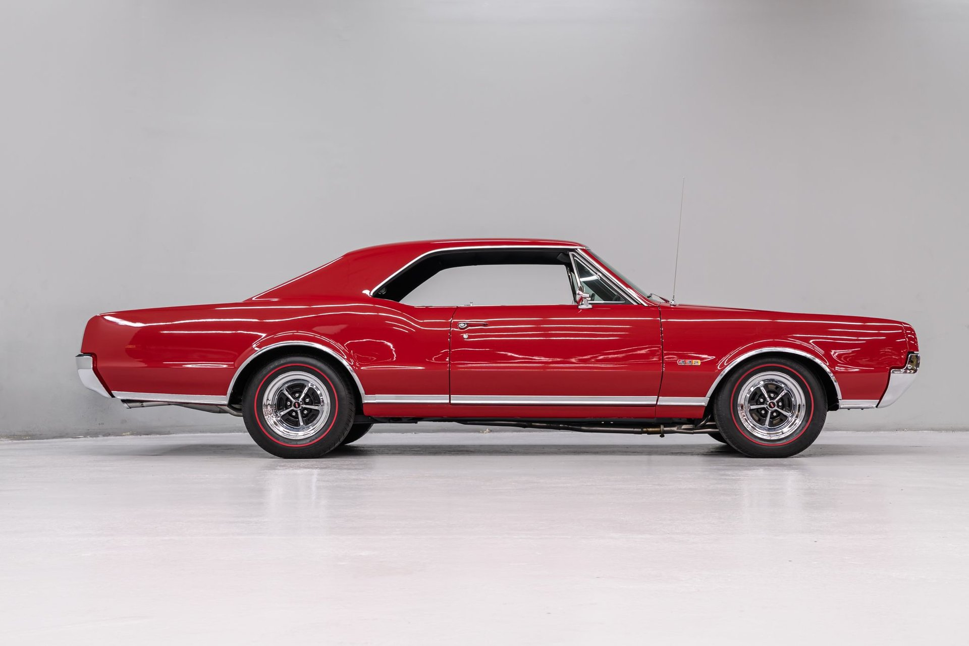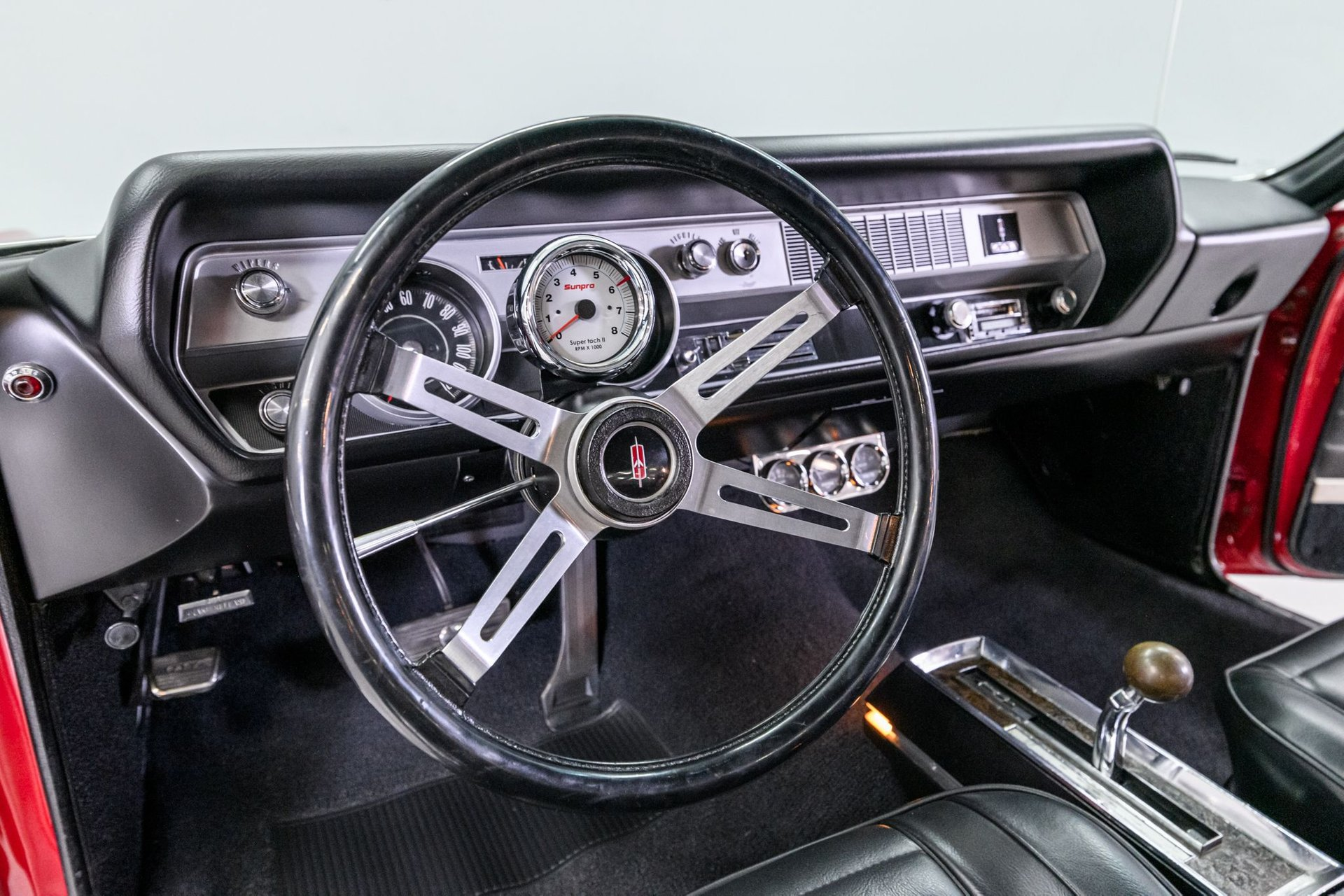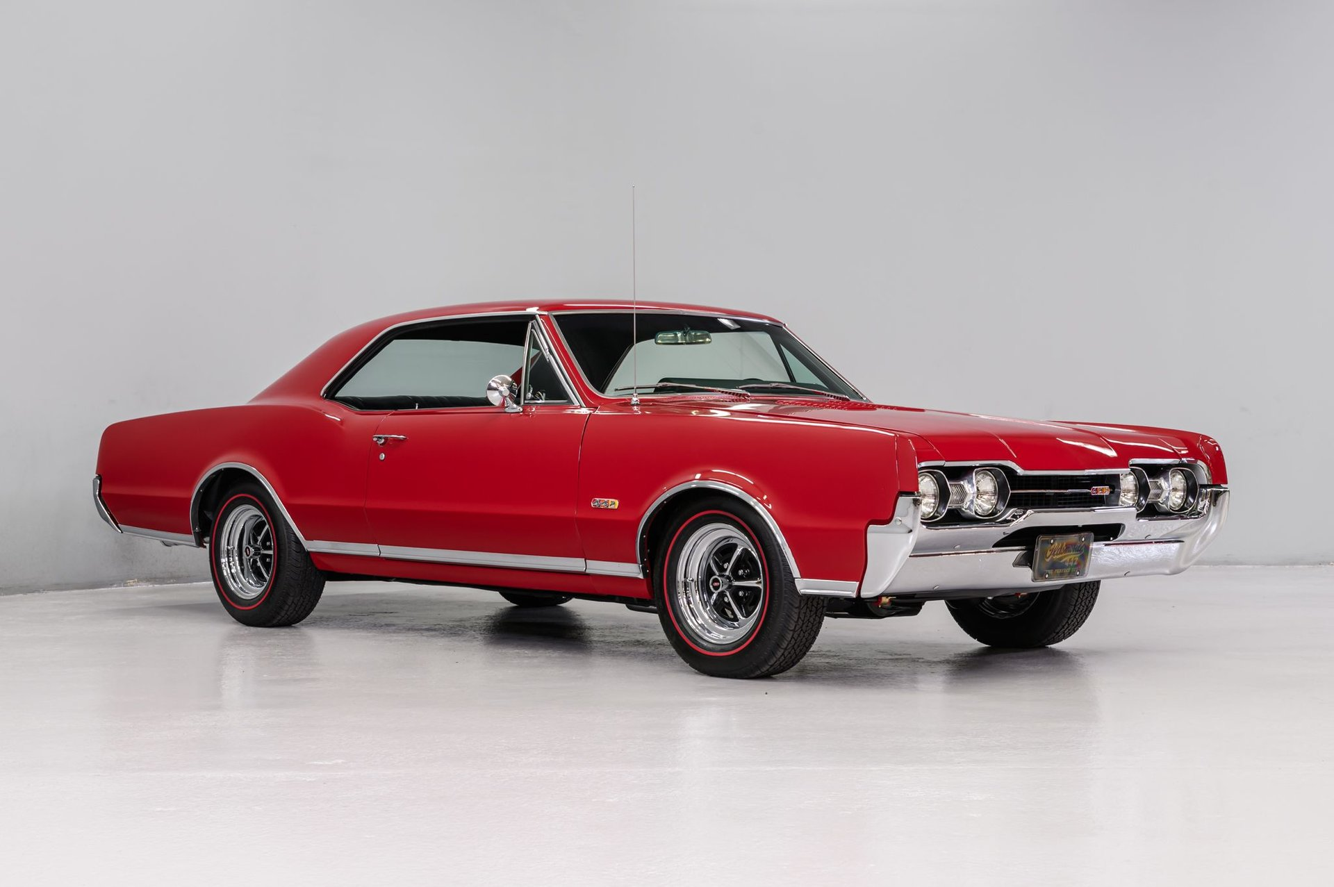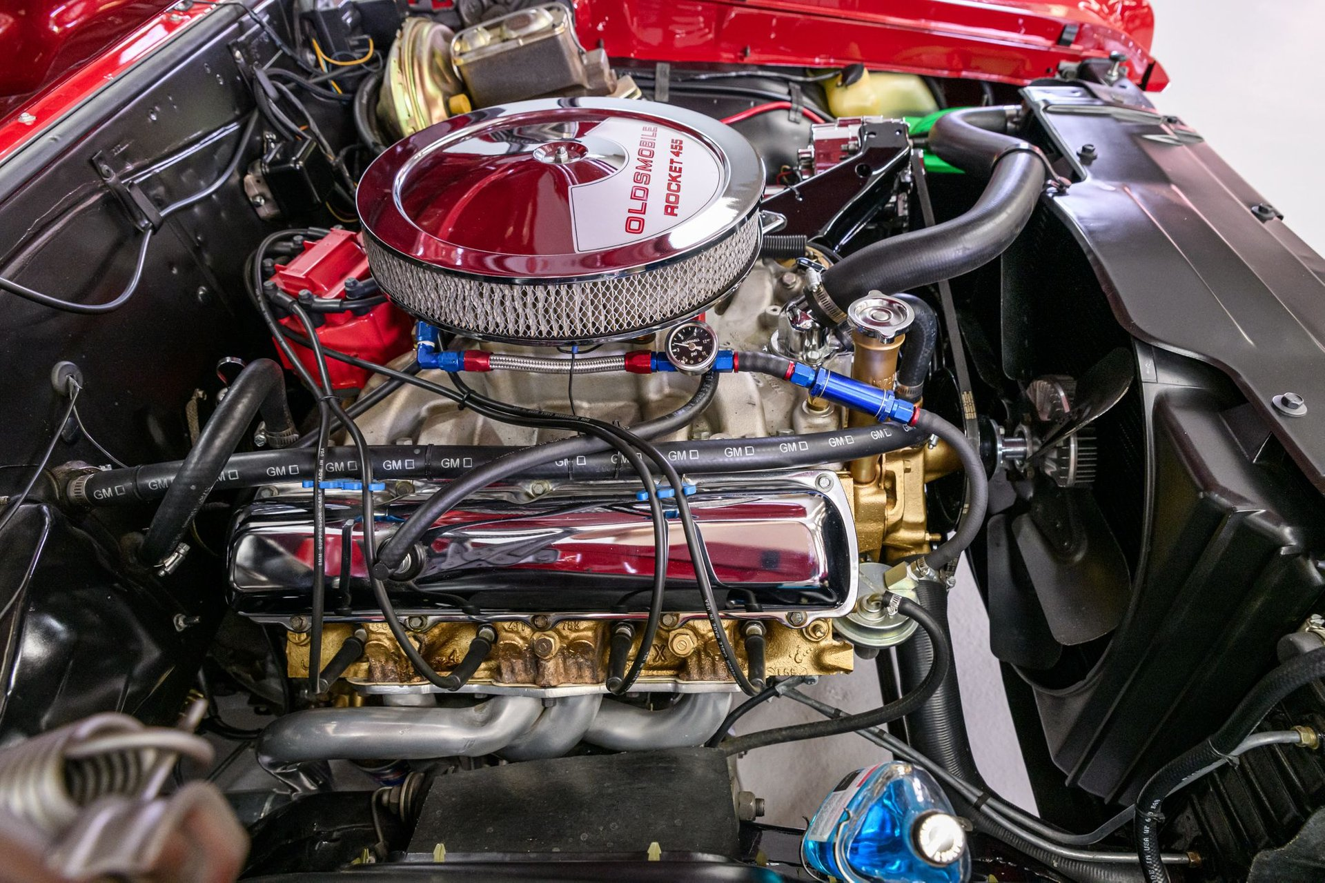 This is definitely not your father's Oldsmobile. The beautiful Olds has been the benefactor of a full restoration. A professional 2-stage Rally Red finish is accented by excellent chrome, Olds 5-spoke SSI wheels w/redline radials and a louvered hood. The black interior has been fully restored. Features include Strato-bucket seats w/console, aftermarket gauge package, Sun tachometer and AM/FM/cassette sound system. The motor currently installed in this 4-4-2 is an Olds big-block 455ci. The engine casting code is 396021F. This indicates that it would have been originally installed in a '68-'72 Olds. Our seller states the motor has been completely rebuilt and is fitted with an Edelbrock aluminum intake, Holley performance carburetor, HEI distributor and stainless tube headers. The powerplant is backed by a GM TurboHydramatic transmission w/Hurst shifter and 12-bolt differential. The virtually spotless chassis is as nice as the exterior. Suspension is 4-corner coil springs with a 4-link rear axle and front/rear sway bars. It is equipped with power steering, power-assisted brakes and a stainless exhaust system. Many folks have said that if Oldsmobile would have marketed their '60s performance offerings with some energy, sales of the Pontiac GTO may have been left in the dust. This Olds hardtop adds an exclamation point to that statement.