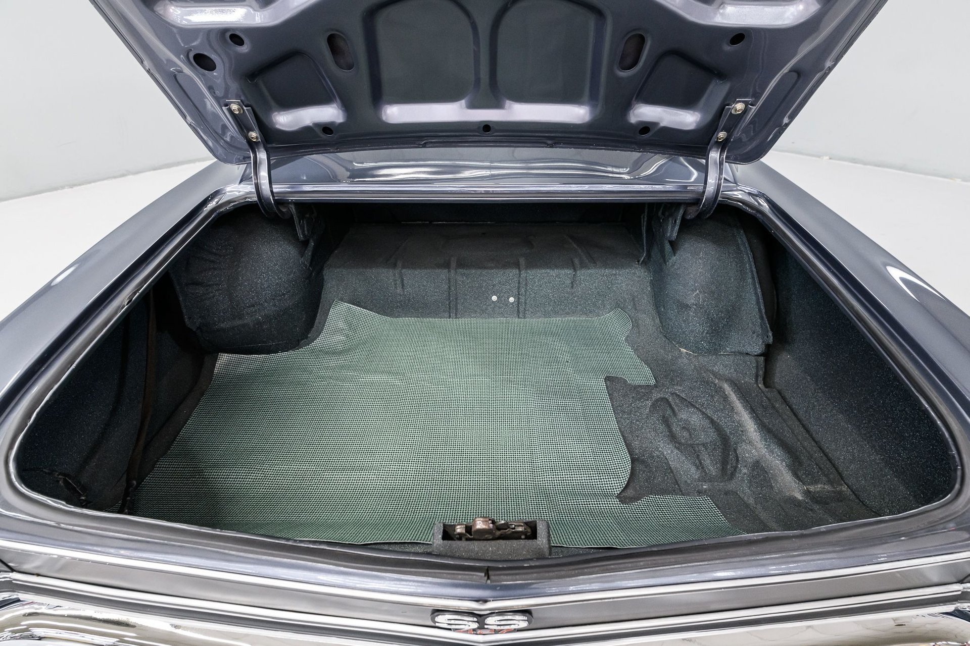 The owner states that the original 396ci motor has been replaced with a period-correct 427ci big-block 'Rat' that sits in a spotless engine compartment. This carefully built, fully dressed 427 sports a single plane aluminum intake, Holly double pumper, full-tube headers and free-flow dual exhaust. The cam is very serious, but not radical. Engine cooling is managed by a serpentine belt system, heavy-duty aluminum radiator and electric fan. This Chevelle is very streetable - and sounds magnificent. The aftermarket 5-speed manual gearbox is fitted with a Hurst Comp+ shifter and transfers torque to a 12-bolt posi-traction differential with performance gearing. Underneath, the chassis has been totally refreshed. It is equipped power steering, power disc/drum brakes w/dual master cylinder and SS suspension with front/rear sway bars. This Chevelle SS427 is truly a unique investment and belongs in your Bowtie garage.