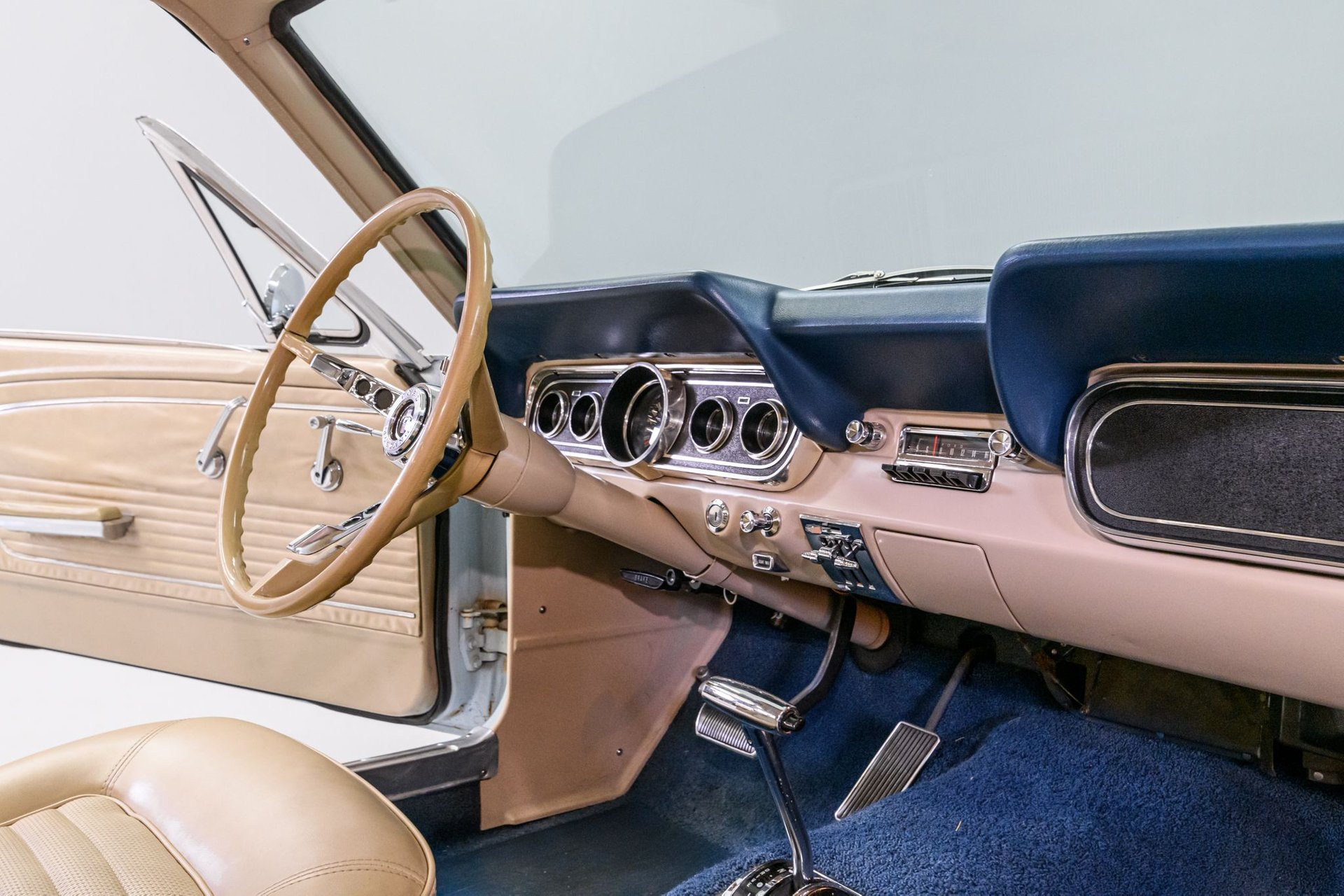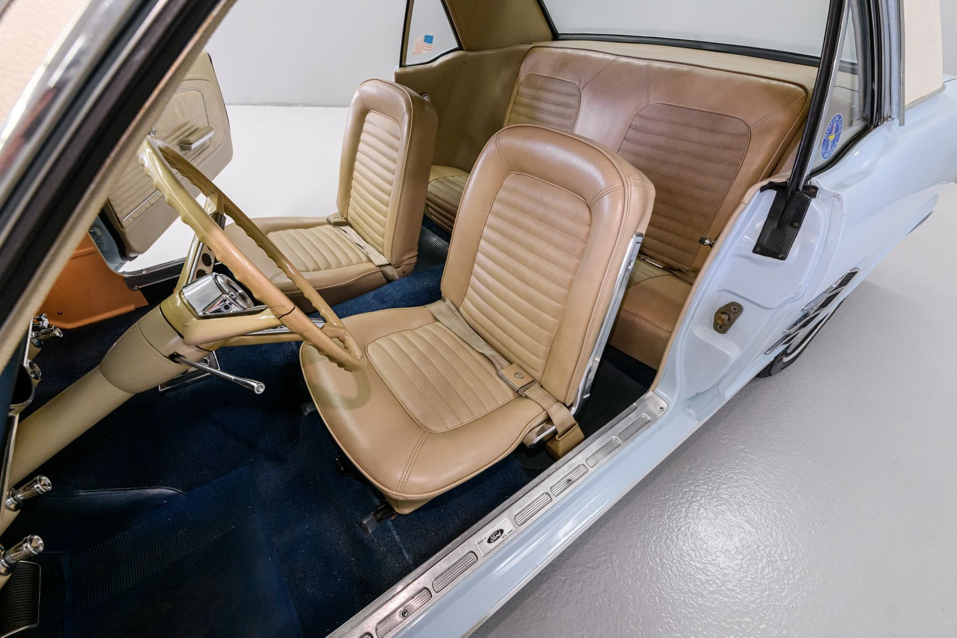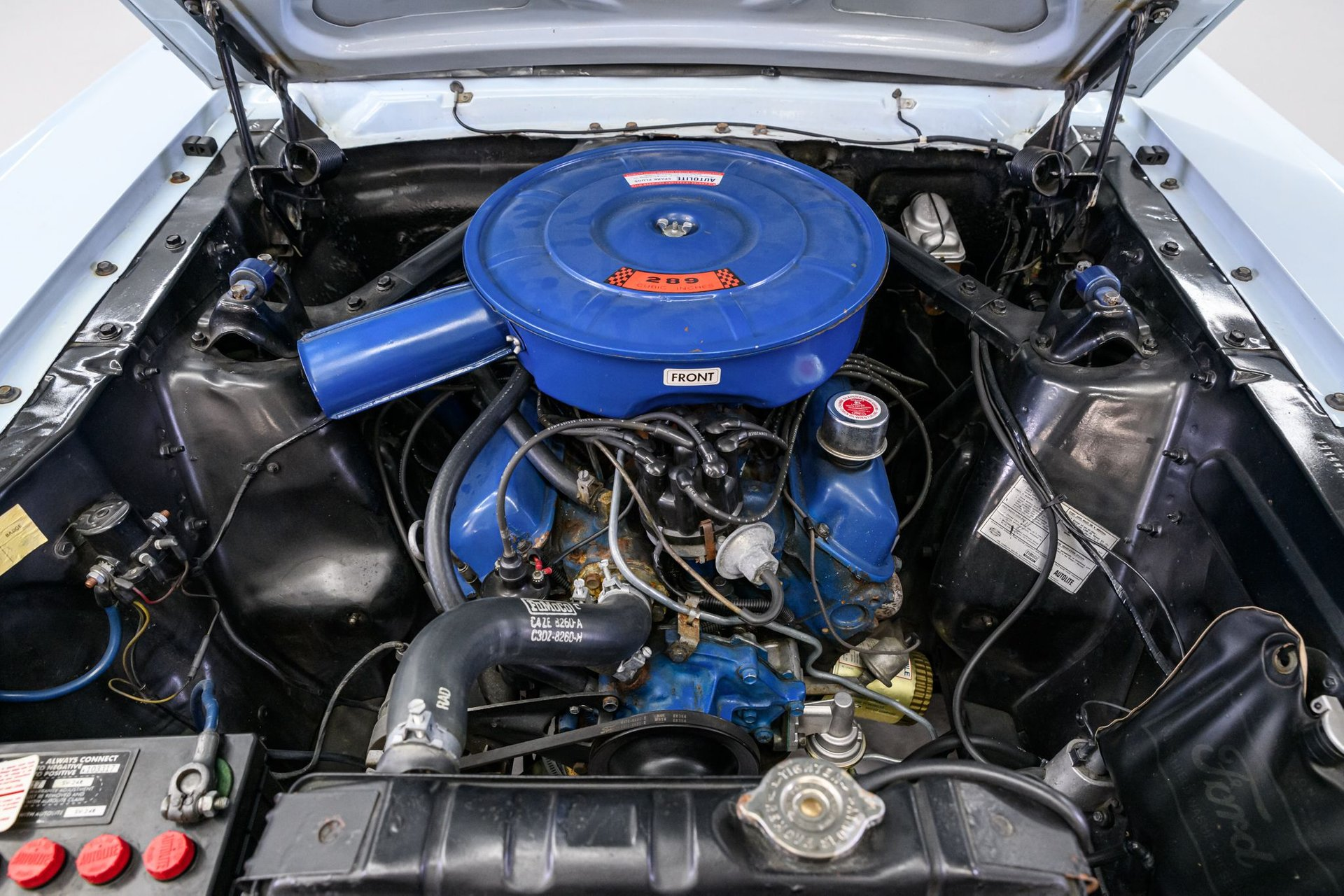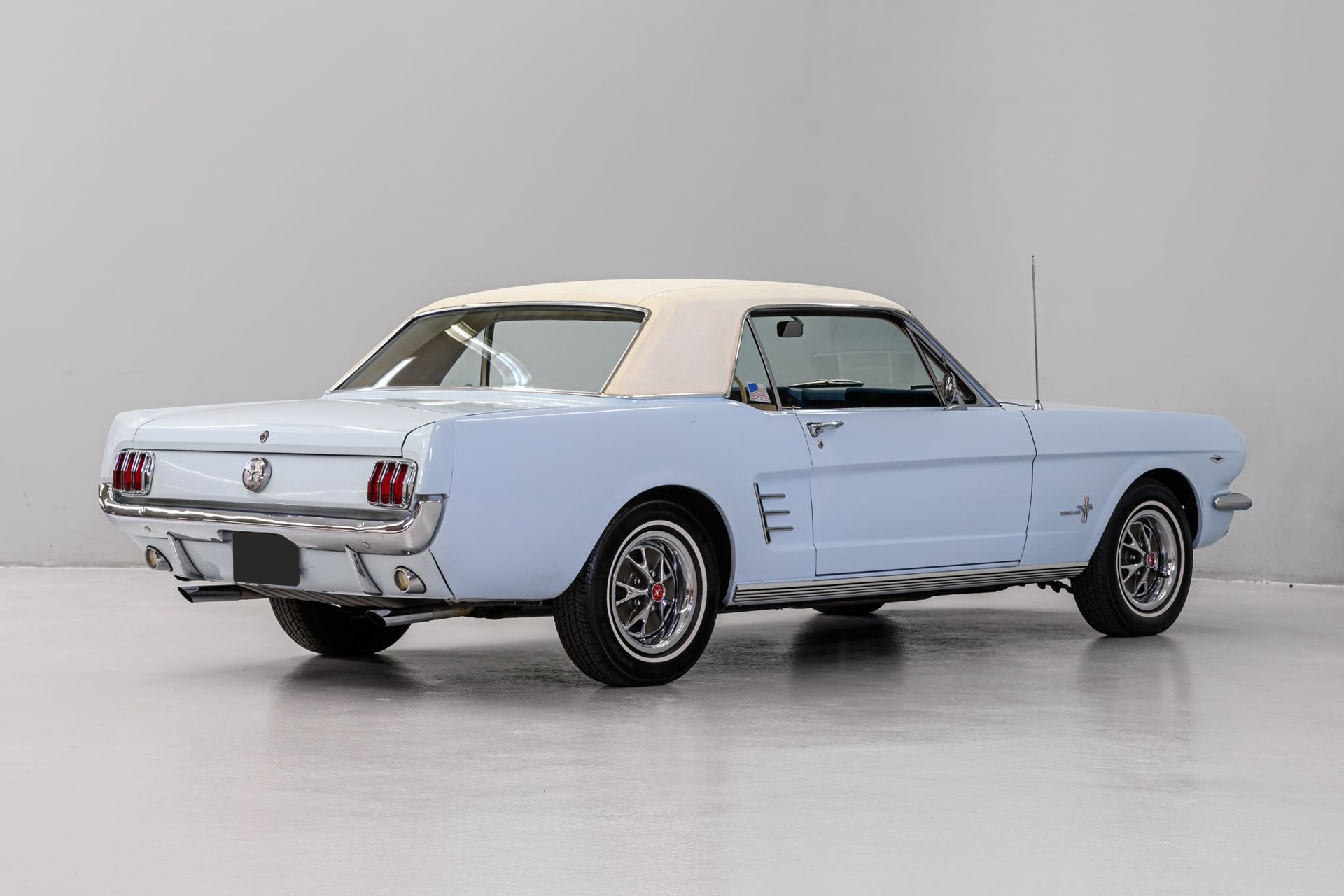 The first generation Mustang was manufactured from March 1964 until 1973 and created a new class of automobile known as the 'pony car'. This '66 Mustang coupe is a well-preserved original example (sans one respray) of this iconic brand. The owner stated that the mileage (87,000) is believed to be actual and that the 289ci/2v engine (C-code) is the factory motor and has not been rebuilt. The Windsor engine currently incorporates an electronic ignition and has been recently serviced with new plugs, distributor cap, wires, belts and hoses. Torque is delivered via a C4 3-speed automatic gearbox to a stock differential and it sounds strong though a dual exhaust setup. The solid body was professionally reshot in original Arcadian Blue Silver Blue finish (F-code). A Parchment Crinkle vinyl top is in very good condition as is all chrome/stainless trim. Factory Mustang GT wheels mount Kuhmo Power Prima white-wall radial tires. The Mustang's original Rosette Beige interior is in very good condition. There is a complete set of factory gauges, a classic 3-spoke wheel and an AM sound system for your tunes. A new windshield and front/back window seals have been installed along with a new headliner/visors. The solid chassis has been upgraded with front disc brakes (rear drum), dual master cylinder and stainless lines. If you want a fun, classic Blue Oval, this sharp Mustang coupe has your name on it.