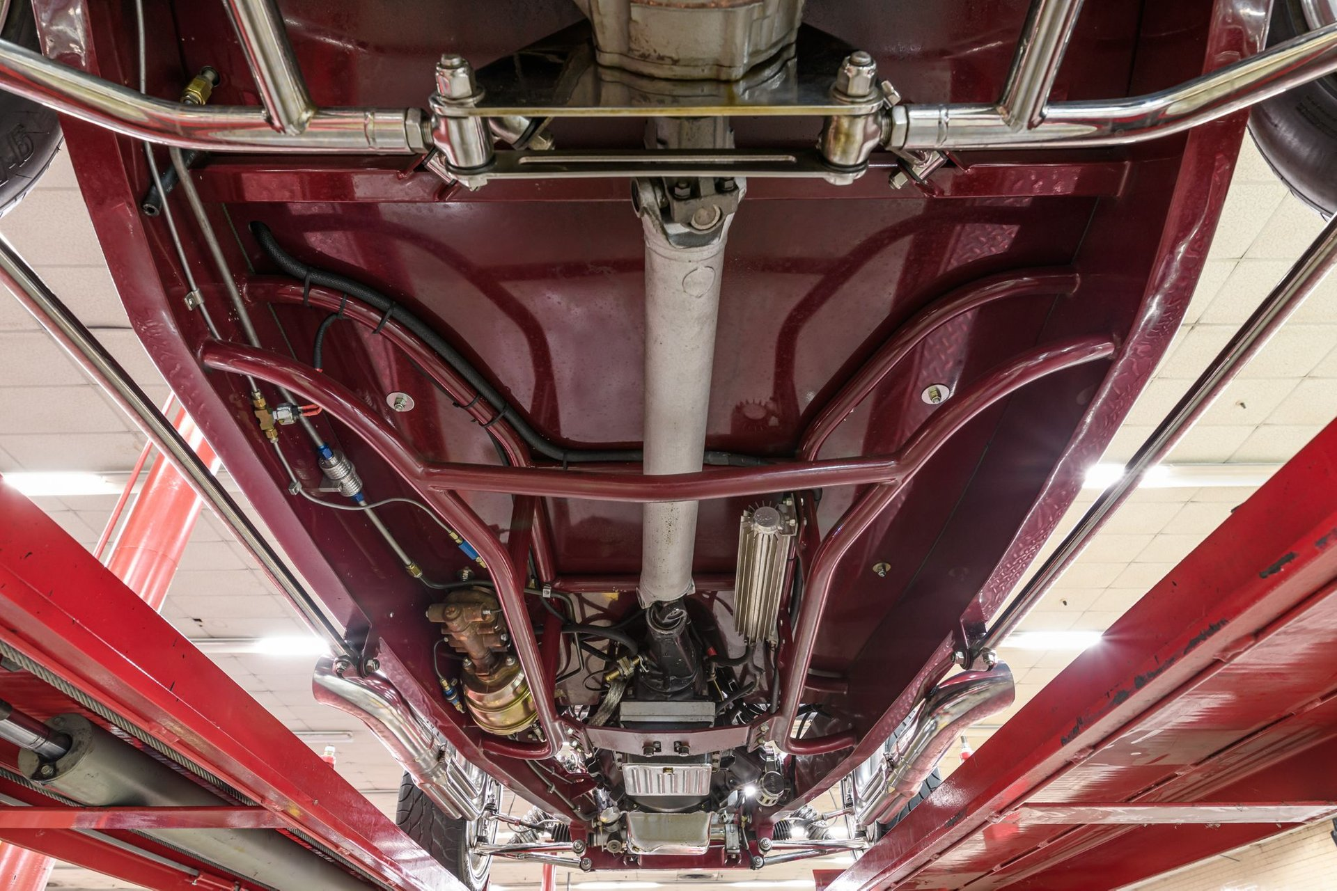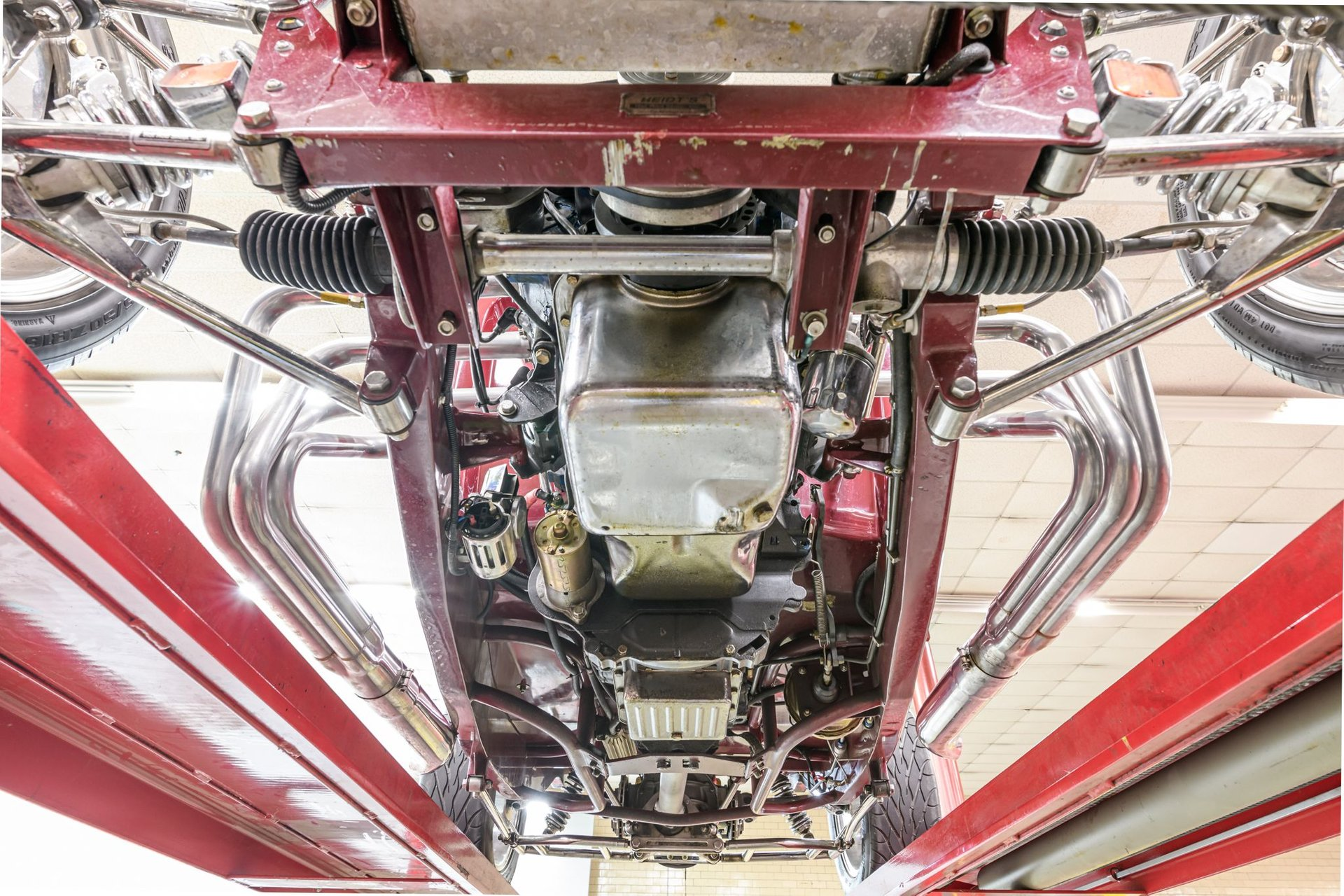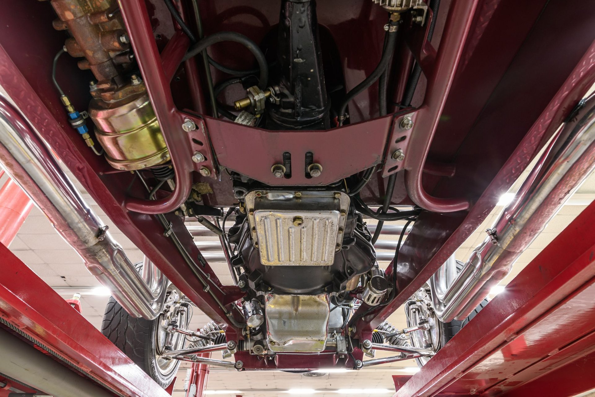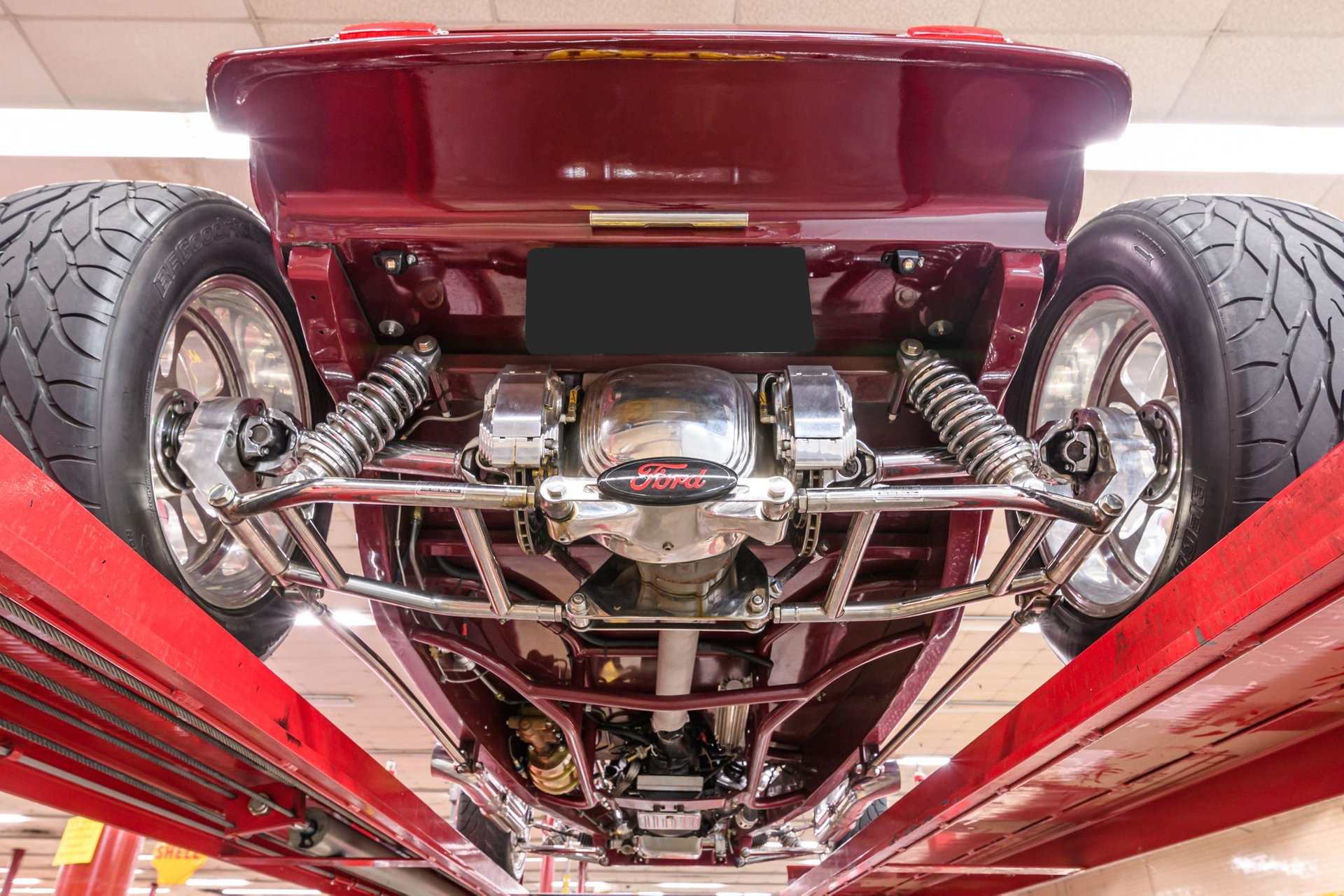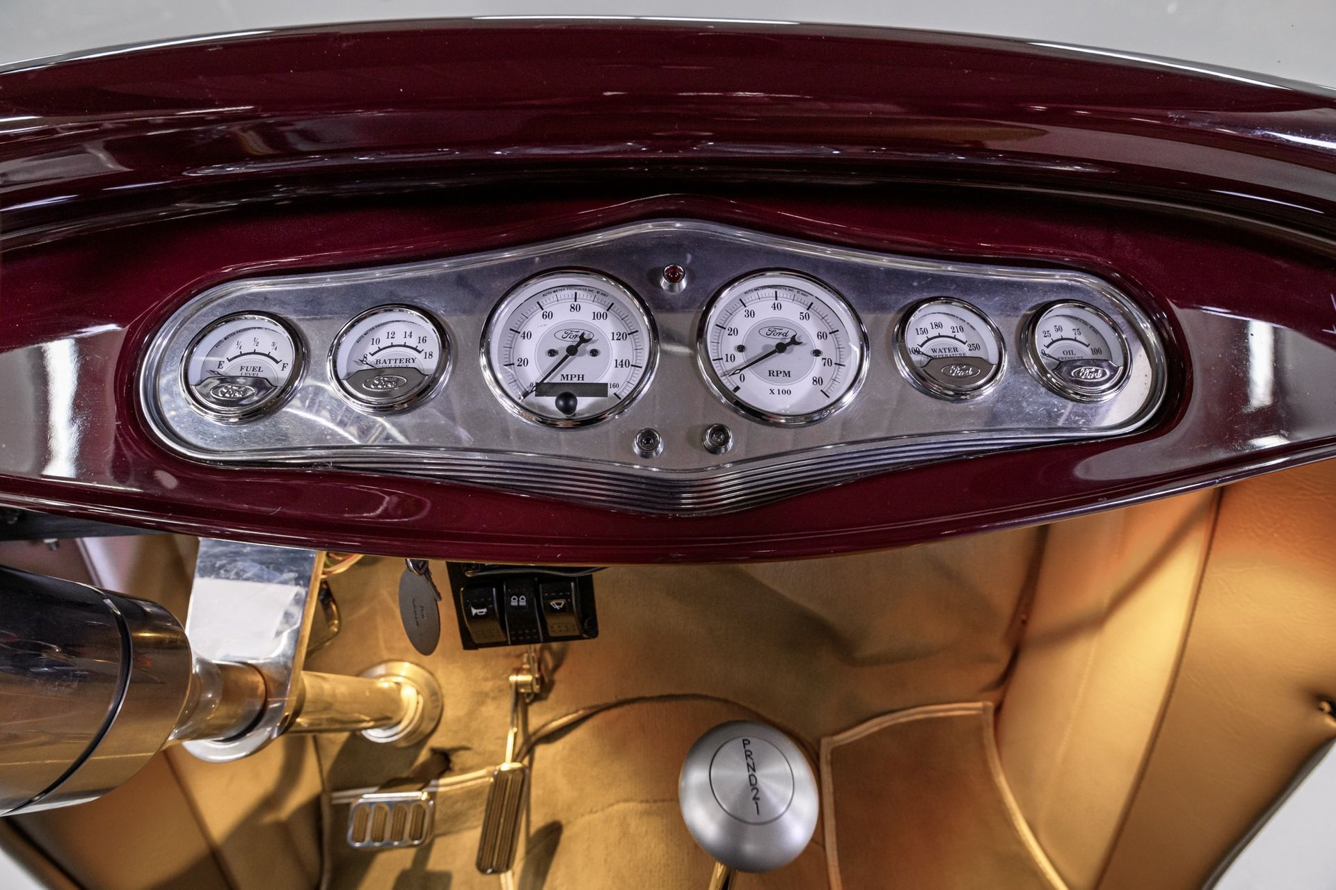 If you plan to build a top-shelf street rod, you must begin with a vision. You must then execute every detail carefully with the best components available. When done correctly, the result will be in a class with this 1932 Ford 'Deuce Coupe'. The Model B 'replica' utilizes a 3-window fiberglass body, Ford/Heidts drivetrain and custom Heidts suspension. The professional Burgundy finish is exceptional and fits the build perfectly. There is no hood, no engine side covers, no fenders and a pair of suicide doors – pure. The Billet Specialty alloys (16”f/18”r) mount BFGoodrich G-Force T/A radials and a pair of low, shock-mount headlight assemblies flank the deuce grill. The interior is upholstered in 2-tone tan vinyl with matching door cards and headliner - it is stunning. The classic dash contains a polished insert and full set of AutoMeter white-faced gauges. A Billet Specialties alloy/wood-accented wheel is mounted on an tilt column and tunes are provided by a SecretAudio AM/FM sound system w/Bluetooth/remote that is tucked carefully under the seat. Other convenience features include power windows, power trunk and a Dash Cam. A Ron Francis wiring harness takes the guesswork out of the electrics. Horsepower is furnished by a high-performance Ford 289ci crate motor that is fitted with an Edelbrock intake and Holley 4V carburetor. Tube headers and side pipes are ceramic coated and an aluminum radiator w/electric fan manages cooling. Behind this 'Windsor' sits a Ford C-4 automatic transmission w/Lokar shifter. The painted/detailed chassis is fitted with Heidts suspension components front and rear. A power rack/pinion steering system is integrated into the front coil-over suspension package and the polished independent rear suspension is a multi-link design w/radius rods, half-shafts and coil-overs. The posi-traction differential is fitted with street gearing and power assisted 4-wheel disc brakes provide stopping power. Receipts of the build are included in the sale. This classic 'Little Deuce Coupe' will become a centerpiece in your Blue Oval garage.