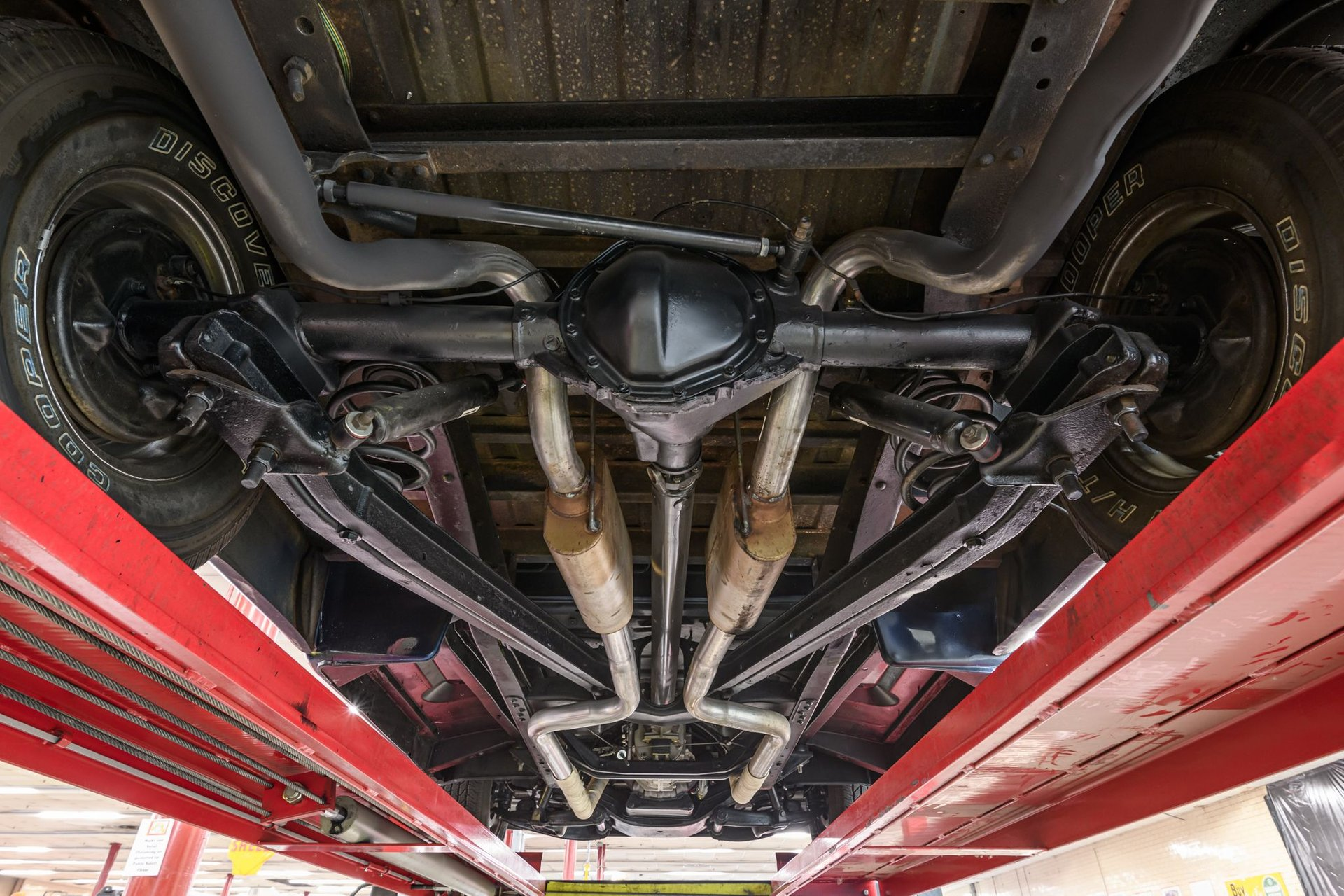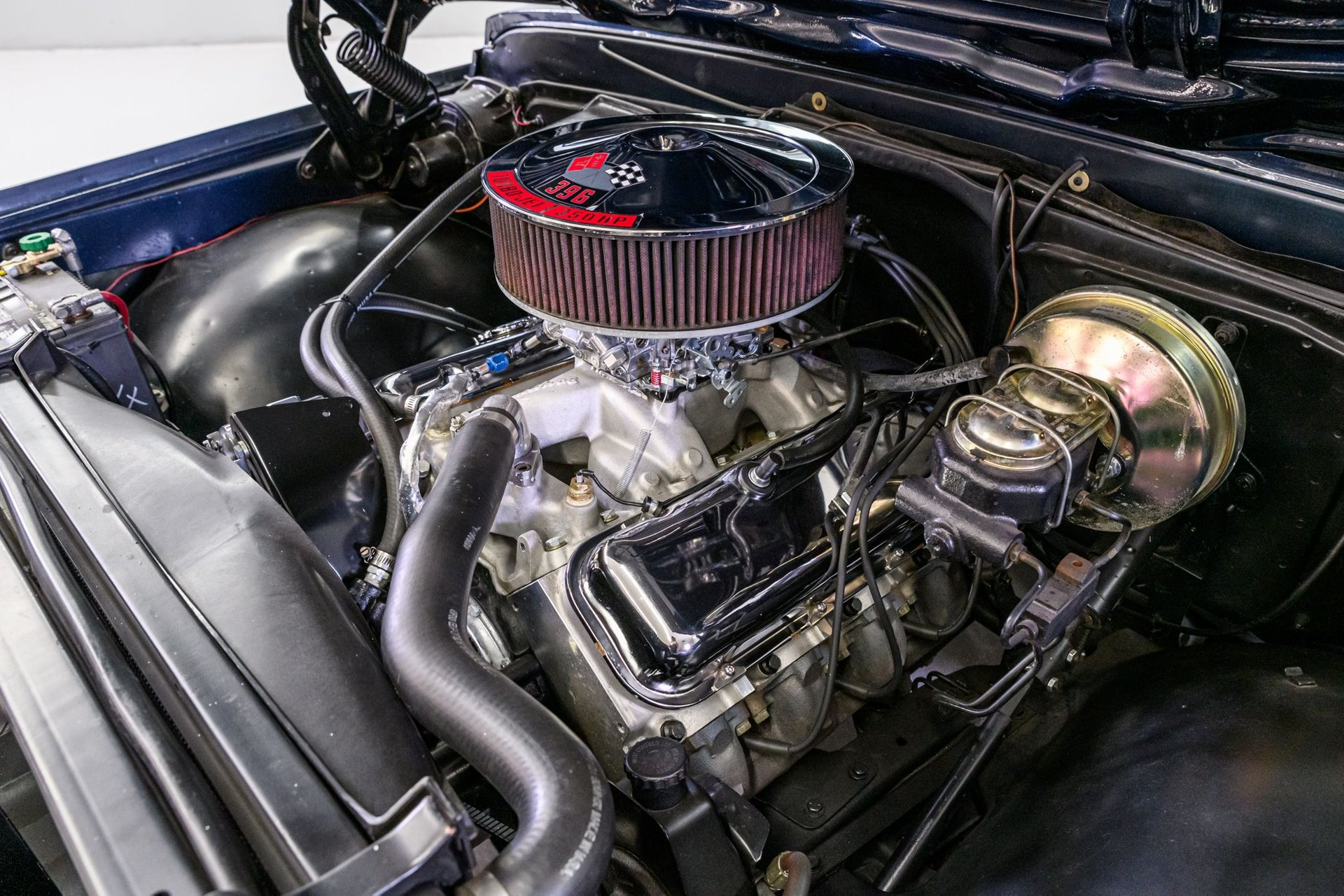 All that said, this truck is not only about looks - it is about performance. Under the hood is a GM 402ci big block, bored .030” over to 408ci, totally built and sounding very strong. It is fitted with aluminum heads, a hydraulic COMP Cam w/292 duration, roller rockers and Edelbrock Performer RPM Air-Gap intake. A polished Quick Fuel 750cfm carburetor provides the mixture and exhaust is routed through GM cast iron manifolds. This is a serious street motor. The 'Rat' is backed by a Richmond 5-speed manual transmission with 11” Centerforce clutch/plate. A Hurst Comp+ shifter manages gear changes and torque is sent to a 12-bolt positraction differential w/3.08:1 gears. The near-spotless chassis is equipped with power steering, power disc/drum brakes, dual master, lowered coil springs, custom rear suspension w/panhard bar and a front sway bar. Put this top-shelf Chevy C-10 in your driveway and we guarantee that the neighbors will come over for a look - and a ride.