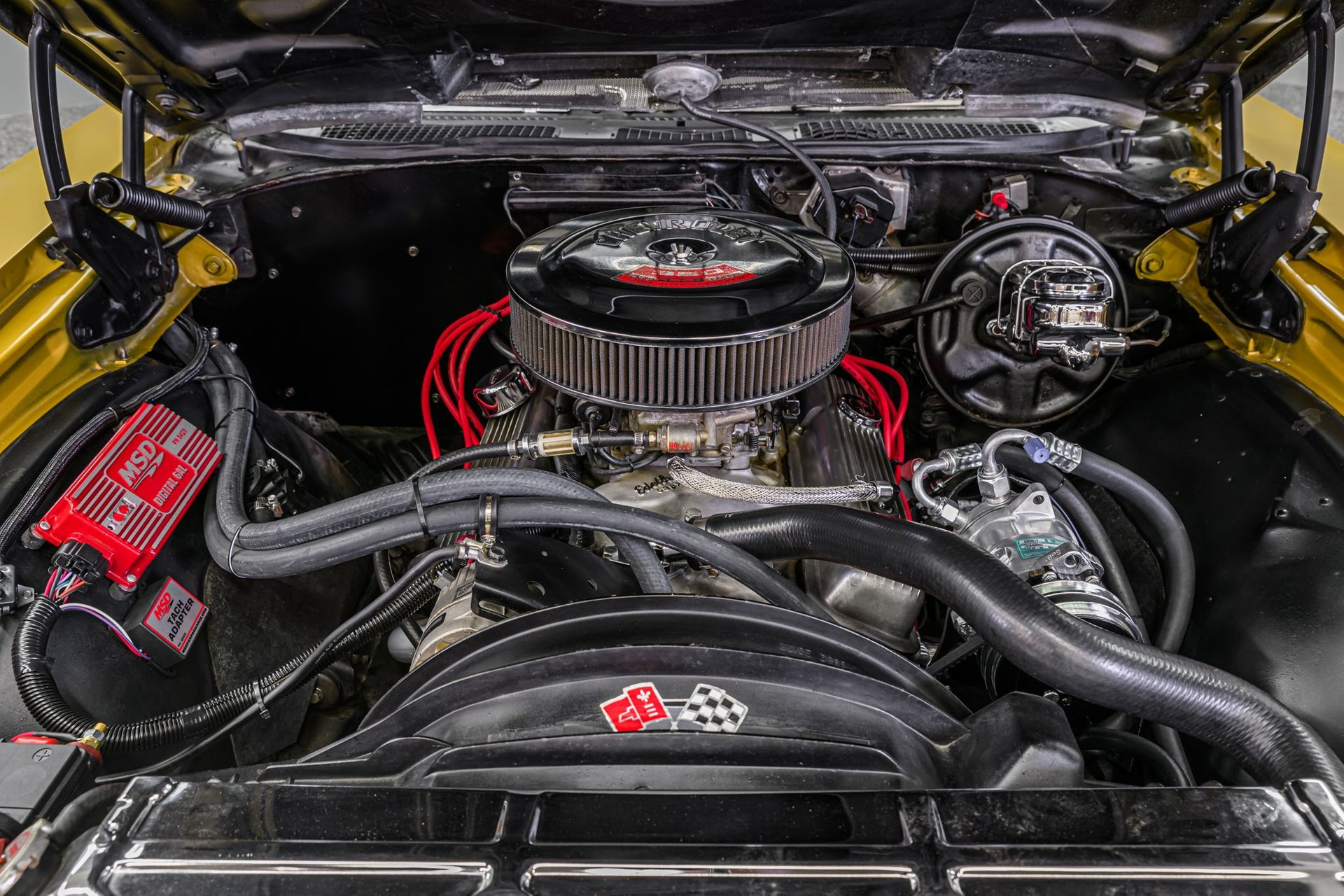 The Chevelle came in many trim levels in 1972. The SS model was an appearance/suspension option that was available with virtually any drivetrain combination that Chevy offered and the owner states that this is a true Chevelle SS. The visual items and mechanical components on the car appear to be all correct SS components. Our Chevelle was the beneficiary of a full restoration in 2016 and a binder of receipts relating to the restoration is included in the sale. The professional Gold respray is excellent and is accented by a black-stripped SS hood w/pins, SS logos and period-correct Cragar wheels w/BFGoodrich Radial T/A tires. The distinctive vinyl interior was also refreshed - seats, SS dash, door cards and headliner - all in very good condition. This Chevelle is equipped with Vintage Air, an Autogage package, tinted windows and an AM/FM/8-track stereo system. The Chevelle is powered by the 350ci small block that the owner states is matching numbers. It was totally rebuilt including new crank, cam, .030 overbore, 8.5:1 pistons, Edelbrock intake, Holley 650cfm carb and MSD ignition. The heads were reworked with new springs and valves. Exhaust is routed to a Flowmaster system by tube headers, This 350 is backed by a built Turbo-HydraMatic 400 transmission w/new convertor and rebuilt 12-bolt factory differential. The chassis is fitted with a new fuel tank and features power steering and power disc/drum brakes with all new components. Suspension upgrades include front/rear sway bars, air-shocks, new springs, ball-joints, bushings and tie rods. If you are considering a classic 'muscle' Chevelle, come check out this beauty - you will not be disappointed.