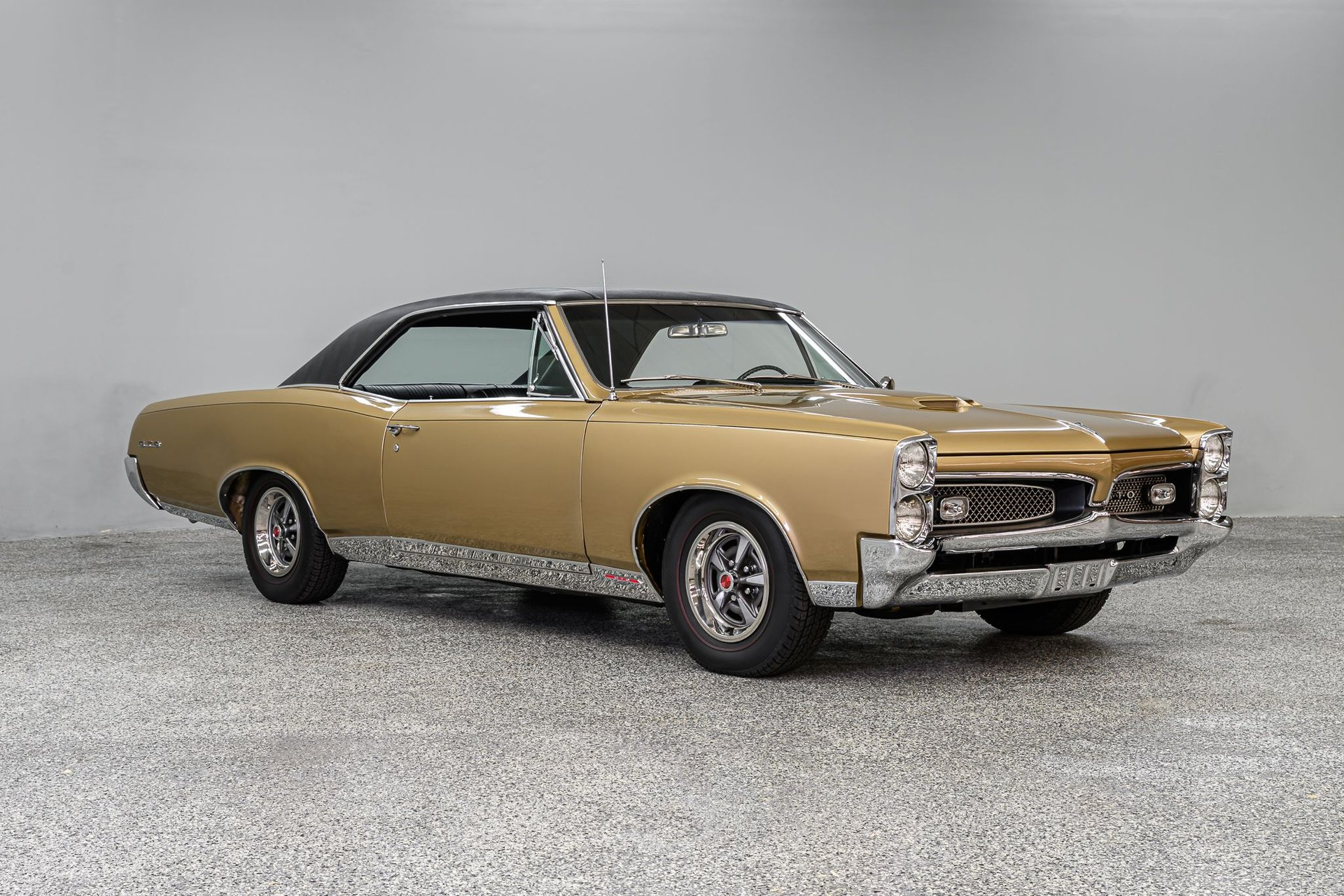 Few cars in automotive history have garnered as much popularity during their first generation as the Pontiac GTO. From a low-key start as an option for the Tempest sedan in 1964, to the iconic 1967 GTO, this first generation Pontiac muscle car was a history maker. This all-southern 1967 GTO is a stunning example of an original “Goat” that has been in the possession of the current owner for the past 9 years. (He has provided a ream of documentation including the original window sticker and build sheet.) The exterior received a complete restoration in 2012 including a 2-stage re-spray of original Signet Gold finish. The vinyl top and all chrome are outstanding and the black vinyl bucket seat interior was fully restored and is in excellent condition. Our classic GTO is equipped with air conditioning, tinted windows, a gauge package and an aftermarket AM/FM/cassette stereo (original radio included). In 1967, Pontiac increased the GTO engine displacement from 389 CI to 400 CI. The standard engine produced 335HP and 431lb/ft of torque. The owner states that this is the matching numbers standard engine that received a rebuild in 2012 to stock specs plus a tri-power cam. It is backed by a Pontiac's 3-speed TurboHydramatic transmission with console shift. Power-assisted front discs and rear drums manage stopping. Factory correct 5-spoke Pontiac Rally wheels mount period correct redline radials. This impressive Pontiac GTO is going to make some new Poncho owner very proud.