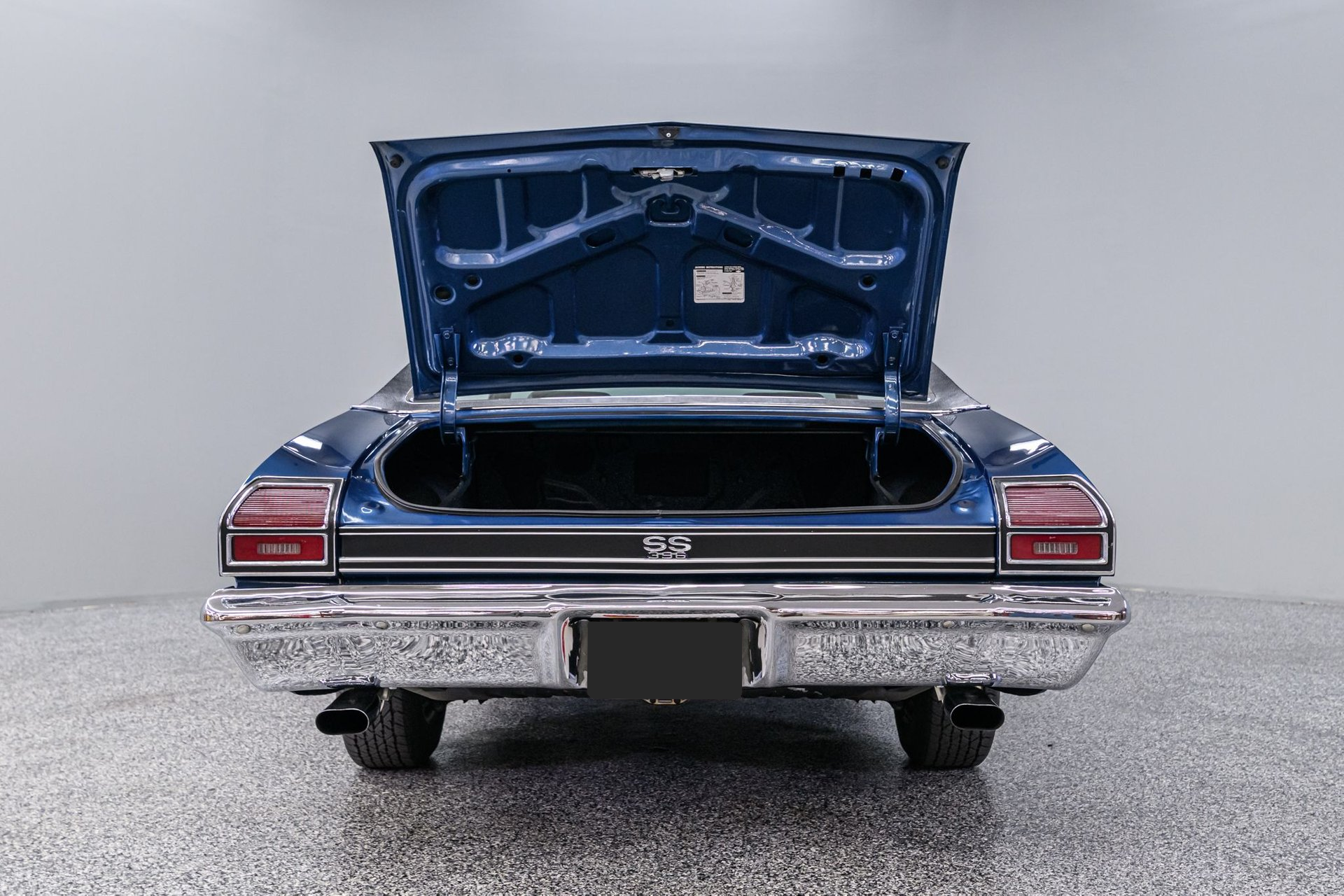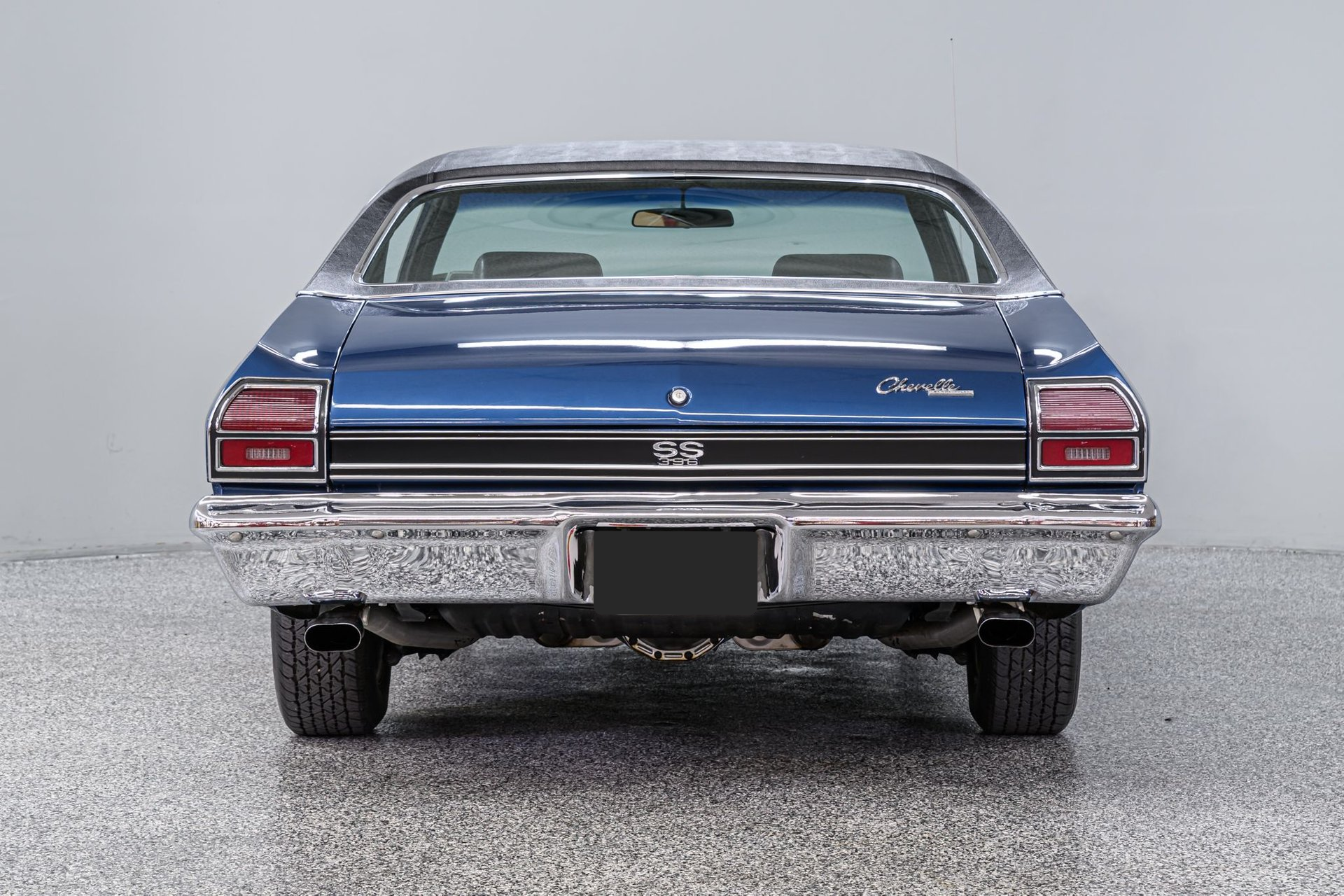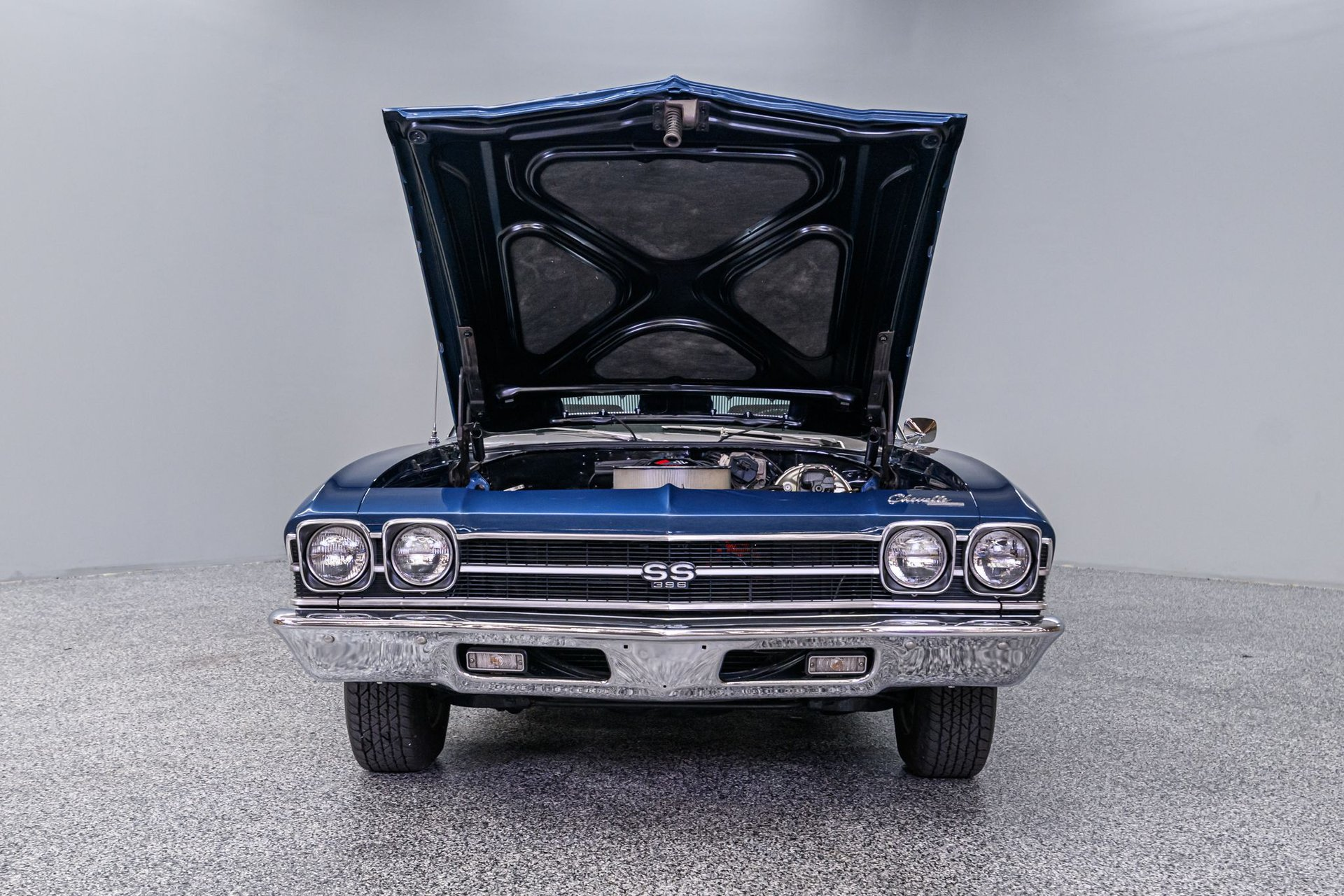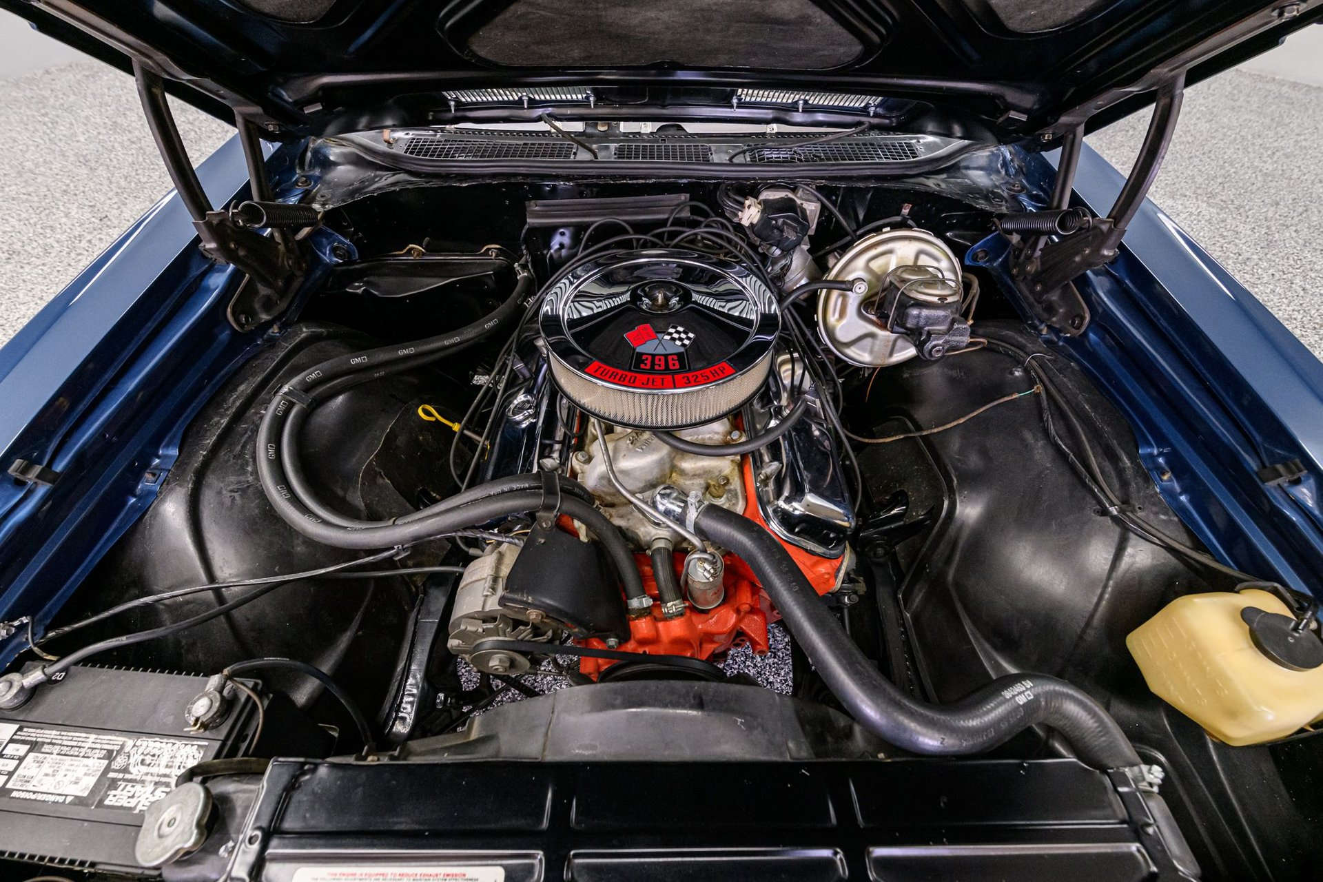 The 2nd generation Chevelle SS396 has become one of the most popular muscle cars ever built. The current owner of this Chevelle has had it for the last 25 years and states that it is a true SS396. A '69 Chevelle can be a somewhat difficult car to positively identify as a factory SS396 due to the fact that the SS396 was simply an option code (RPO Z25) on the Malibu model, not identified in the VIN sequence as a '138 code' as were previous models. That said, the engine in this Chevelle is stamped with the matching VIN number including the 'JA' code (unique to the '69 SS396 Chevelle). Every other SS element of this car also appears to be 100% authentic. A full restoration has been performed on this beautiful SS396 and the attention to detail is precise. The body was professionally resprayed in original Dusk Blue (code 51) with a new contrasting black vinyl top and the chrome and stainless pieces are excellent. All SS396 badging is correct, as are the 14” Chevelle Rally II wheels w/caps that mount BFGoodrich T/A radials. A custom car cover is also included in the sale. The interior was reupholstered in black vinyl with bucket seats, console, Muncie shifter and the correct SS396 'pod' gauge package. A factory AM radio resides in the dash. The matching numbers 396ci/325hp 'Rat' was totally rebuilt and a mild cam and Edelbrock aluminum intake were added. A Rochester Quadrajet provides carburation and exhaust is routed through tube-headers to a free-flowing system. The transmission is a close-ratio M-21 Muncie and a 12-bolt positraction differential is fitted with factory street gearing (probably 3.31:1 or similar with the 4-speed). Power-assisted disc/drum brakes control stopping. Our Chevelle SS396 is a stunning example of this classic muscle car and will greatly improve the value of your garage.