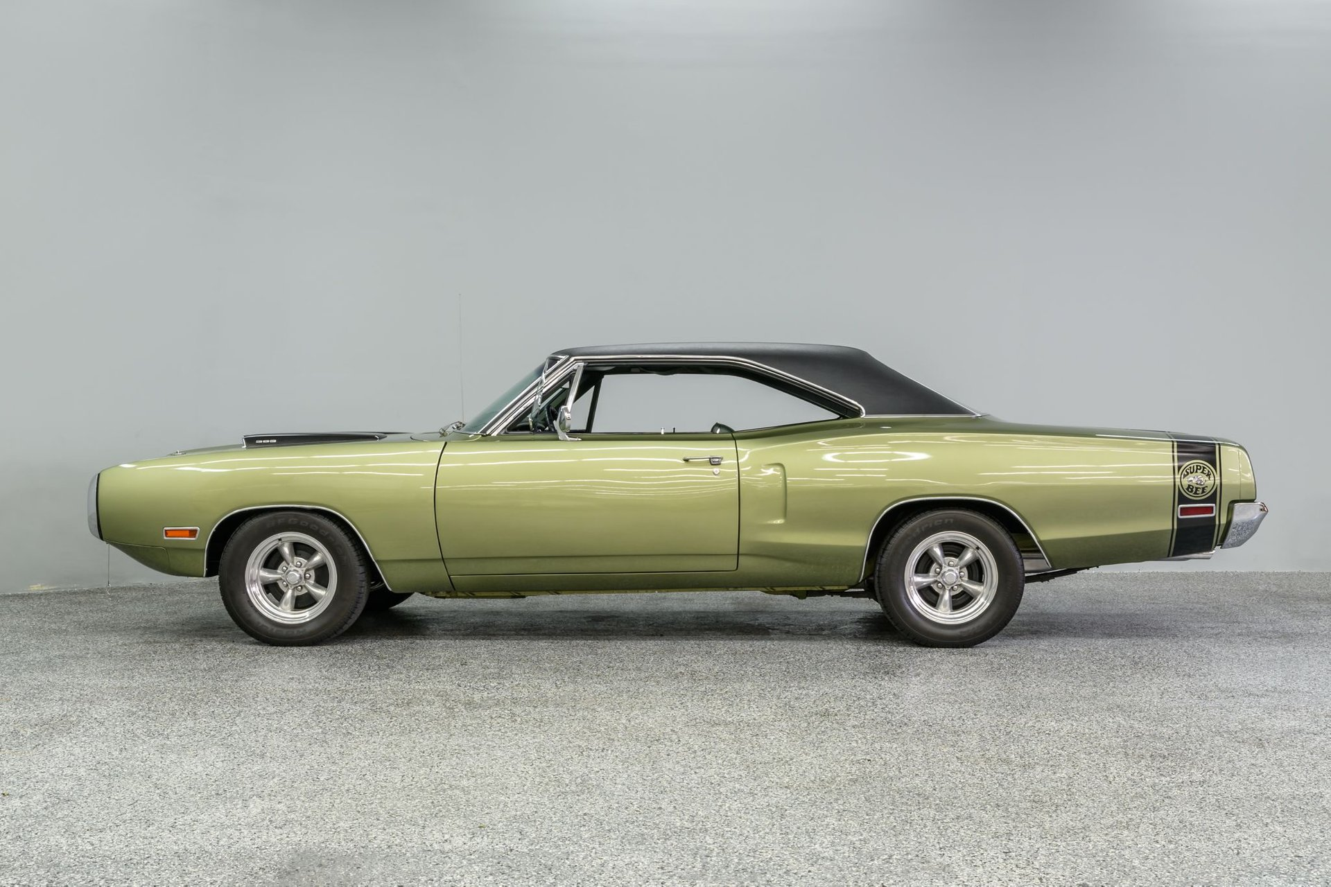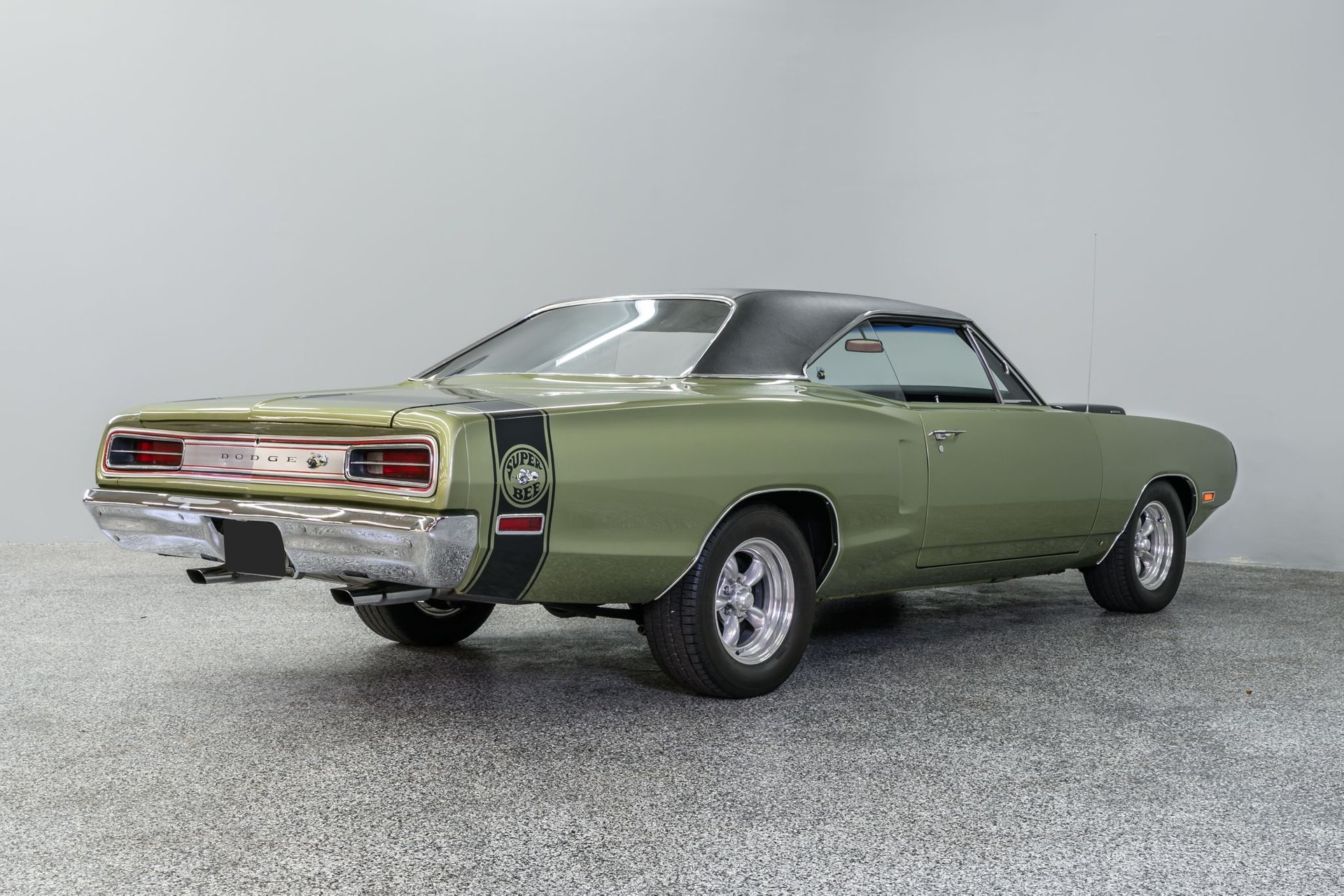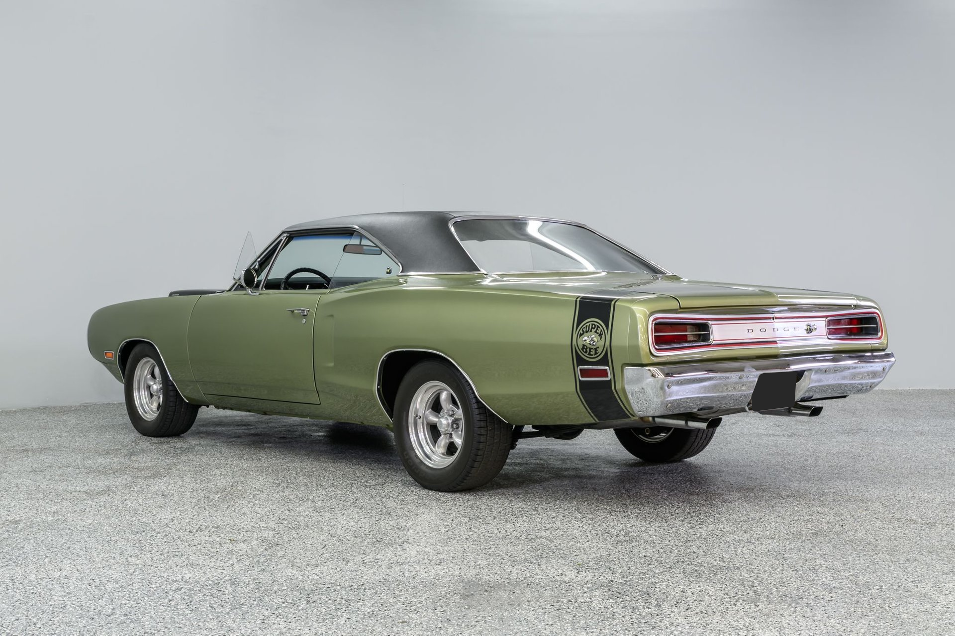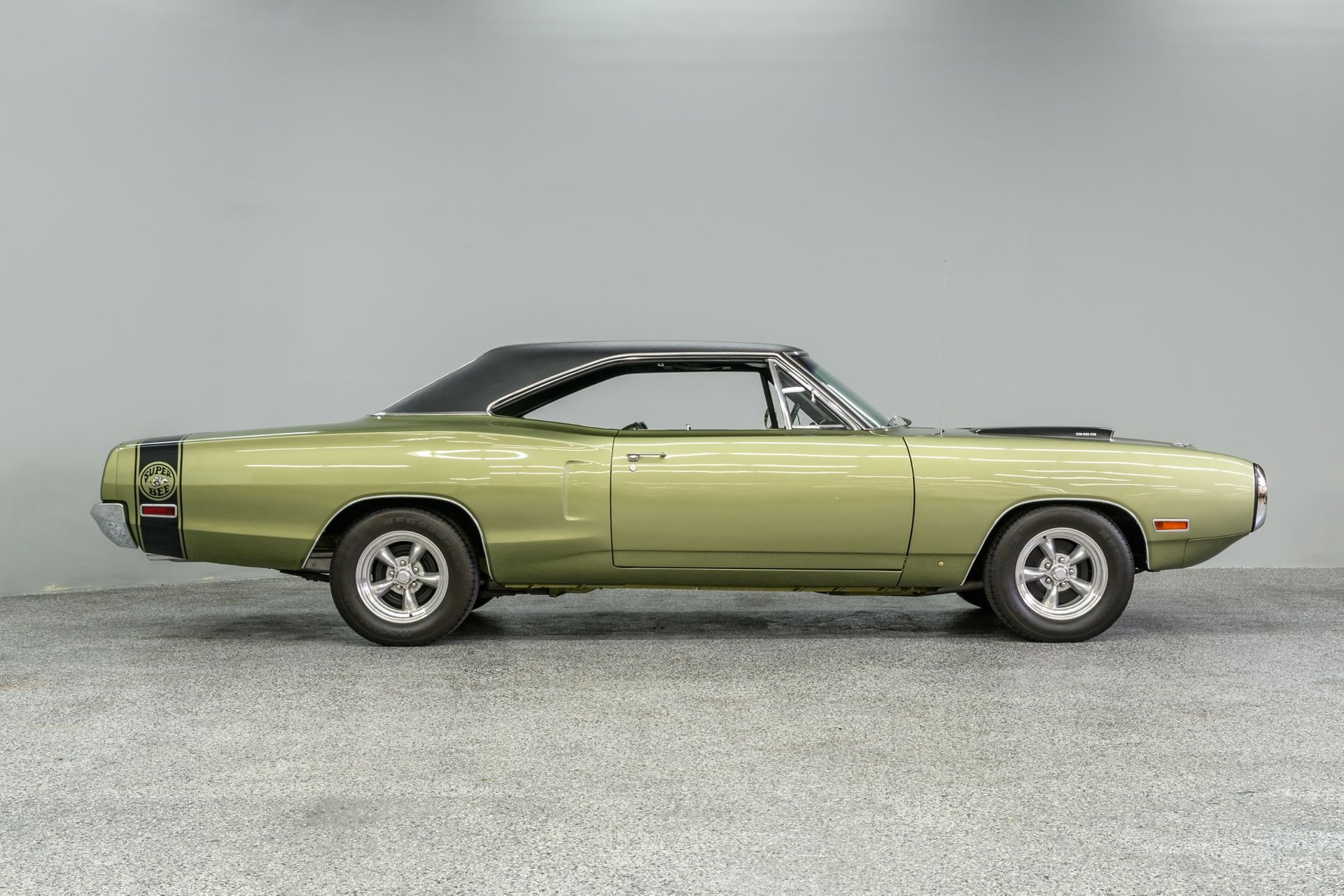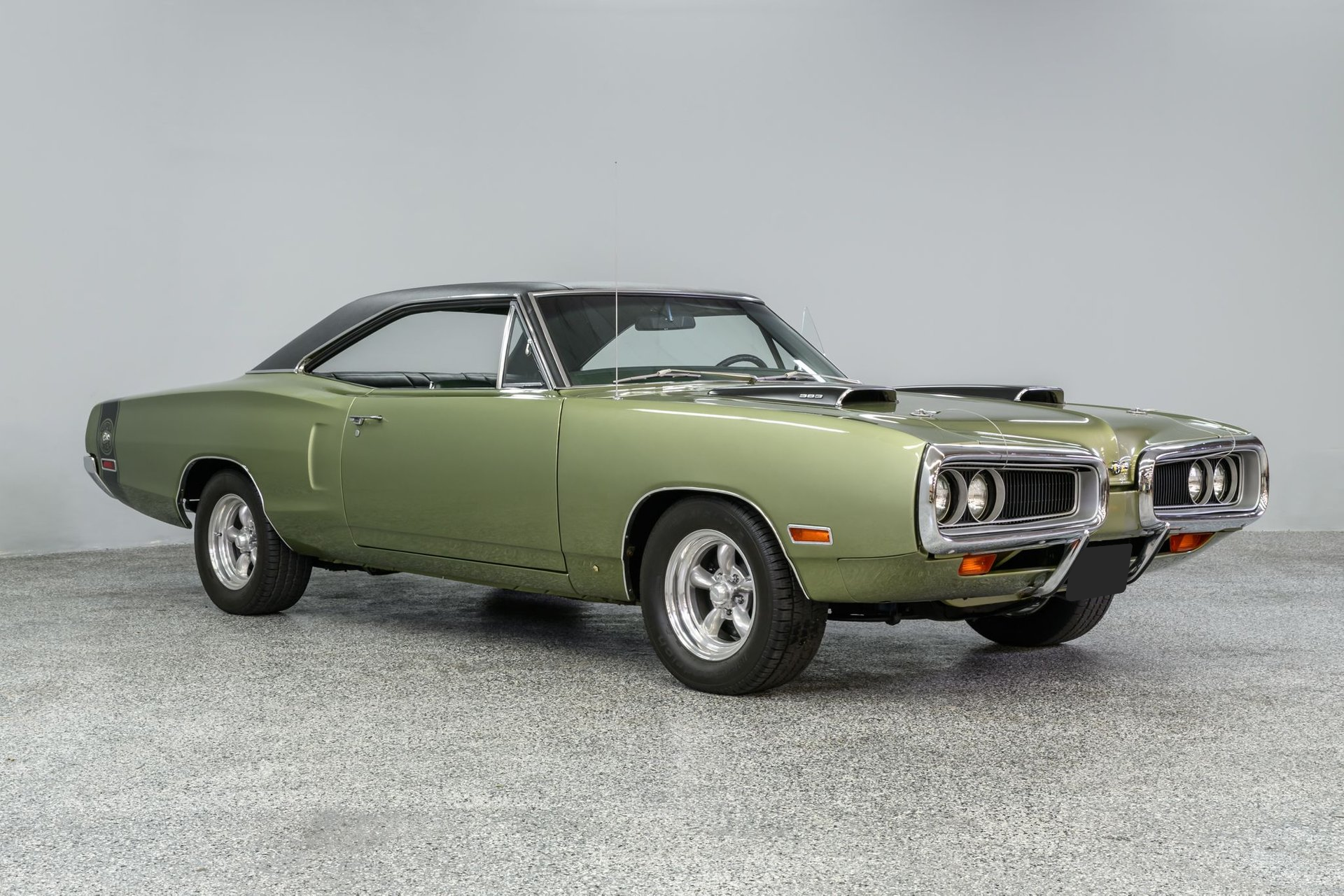 The 'Super Bee' was Dodge's budget-muscle competitor to the Plymouth 'Road Runner' and all the rest. It was based on the 2-door Coronet model and featured many of the same performance upgrades as its Plymouth sibling. 'Scat Pack' was its symbol. This restored 1970 Dodge Super Bee retains its original appearance and performs much like it did in 1970. The two-stage re-spray of Light Green Metallic is in very good condition with factory-correct Bumblebee racing stripes and 'Scat Pack' emblem. Other accents include a matte black 'Fresh Air' hood (w/Richard Petty signature) and black gator-grain vinyl top. The restored interior features green vinyl seating, factory AM radio, a full compliment of gauges and factory AM stereo system. The rebuilt 383ci wedge was the base engine for the Dodge Super Bee and featured cylinder heads, camshaft and induction system borrowed from the famed Chrysler 440ci Magnum. It is married to Chrysler's best, the 3-speed 727 TorqueFlite automatic. The undercarriage is solid and nicely detailed with a new fuel tank and shocks. Handling is aided by power steering, 4-wheel drum brakes w/dual master and American Racing wheels with BFG Radial T/A tires. This rare Super Bee is a piece of MOPAR history from a time when muscle cars ruled the streets.